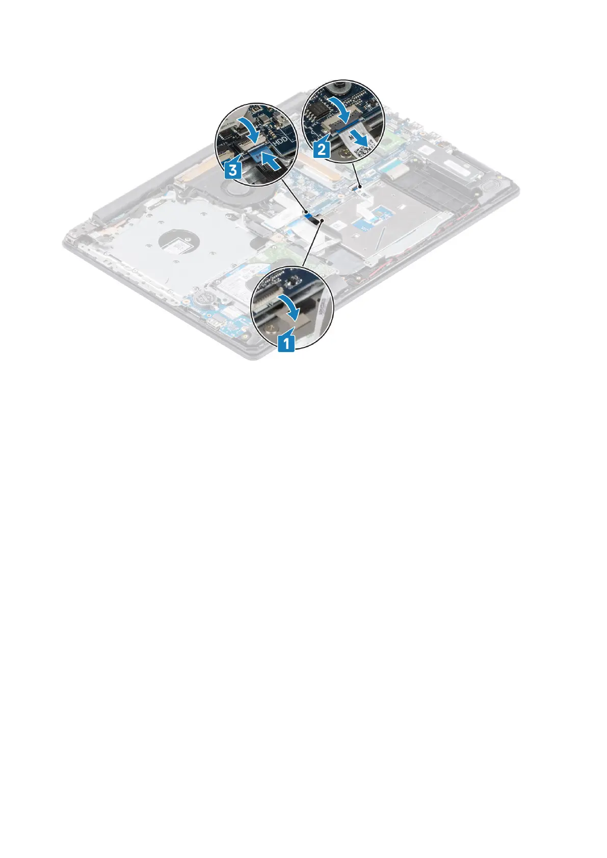 3. Unroute the display cable from the routing guides on the palmrest and keyboard assembly [4].