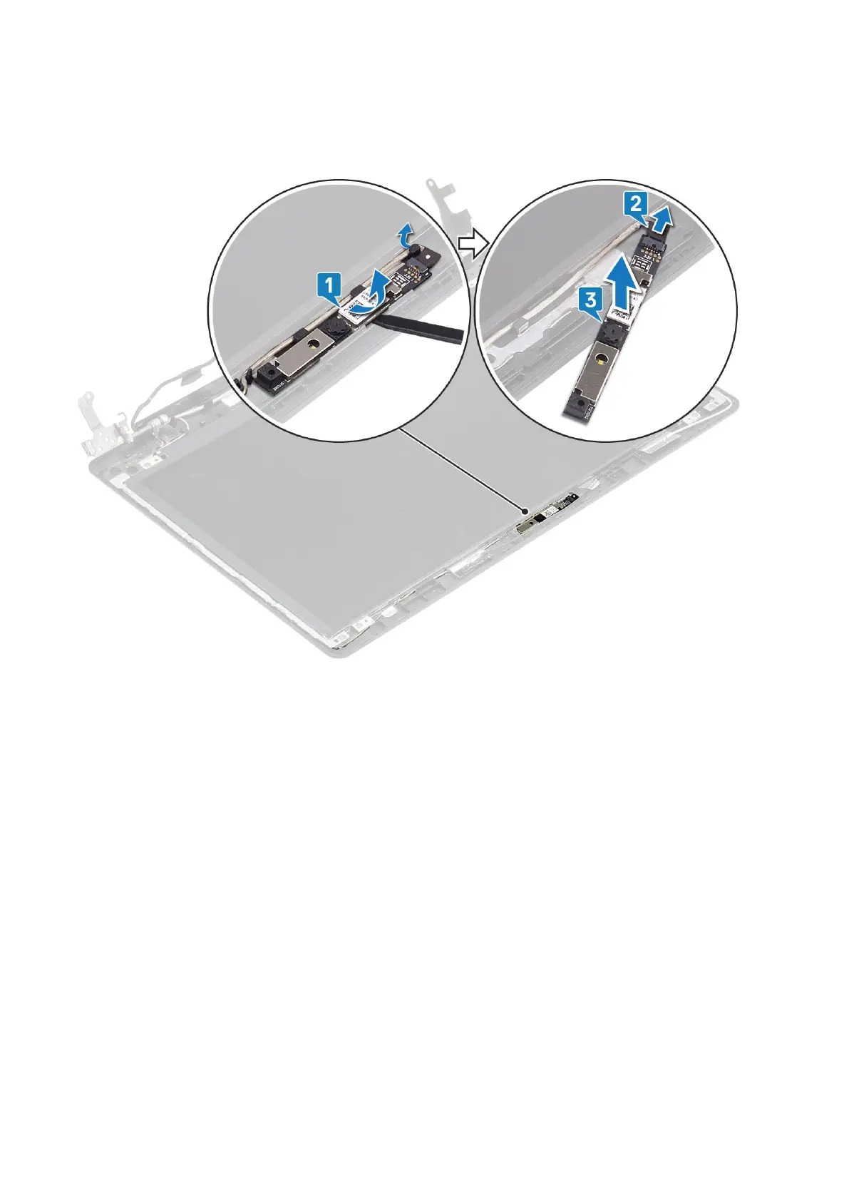 3. Lift the camera module from the display back-cover and antenna assembly [3].