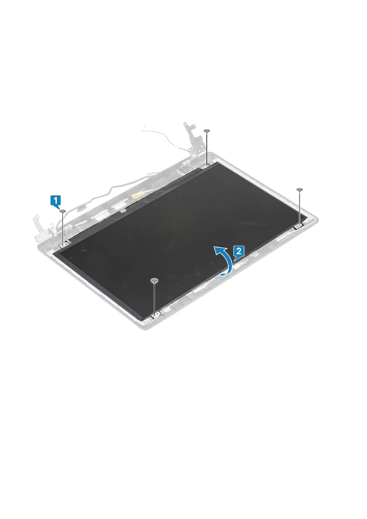 1. Remove the four (M2x2) screws that secure the display panel to the display back-cover and antenna assembly [1].