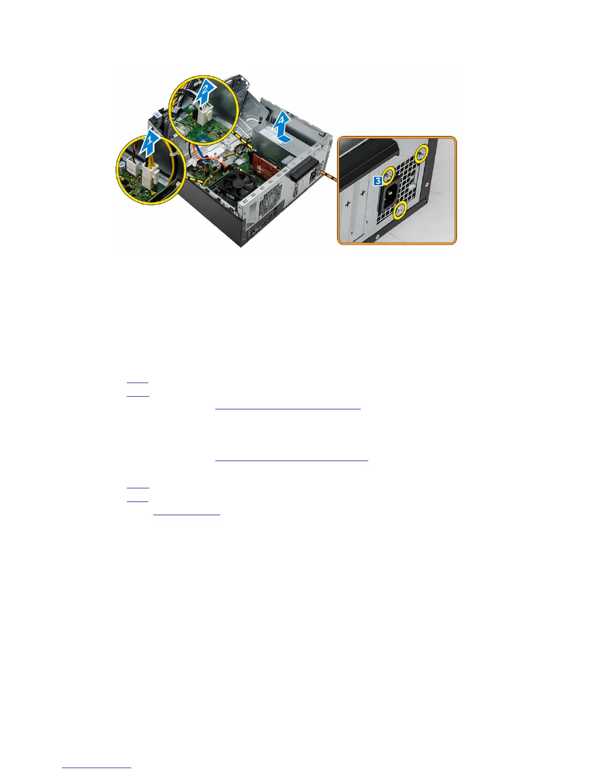 2. Replace the screws to secure the power supply unit to the computer.