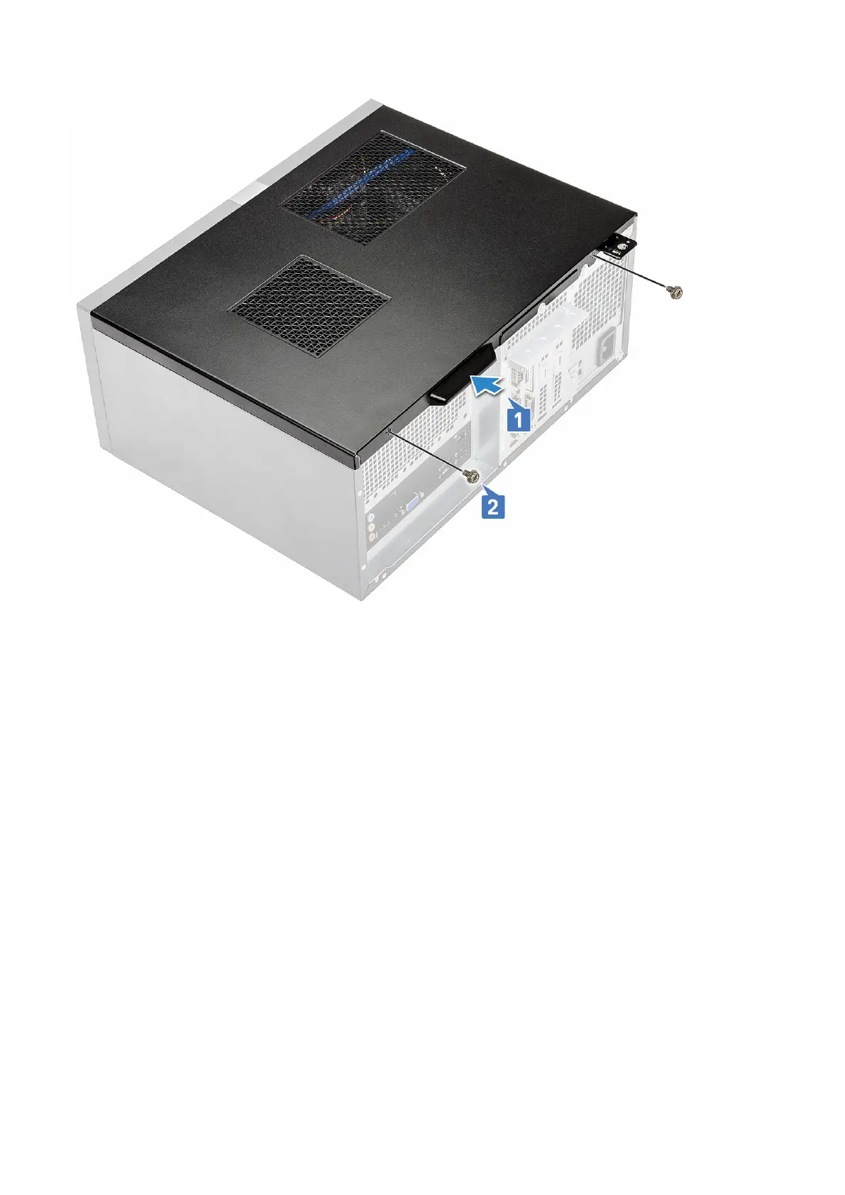 b) Lift the chassis, rotate and pull the front bezel away from the computer to release the tabs [2].