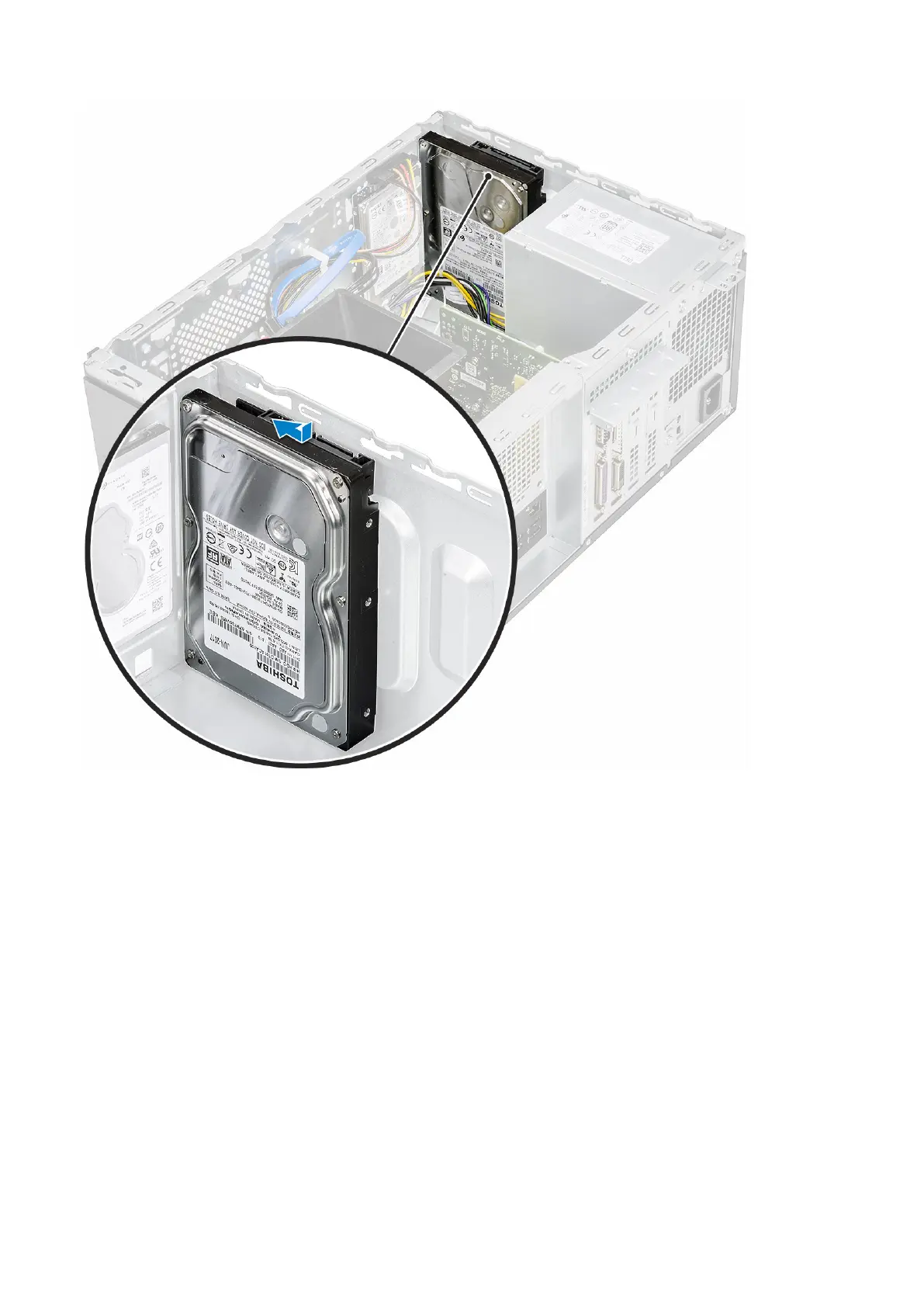 2. Install the four (6-32x3.6) screws that secure the hard drive assembly to the base and front of the chassis.