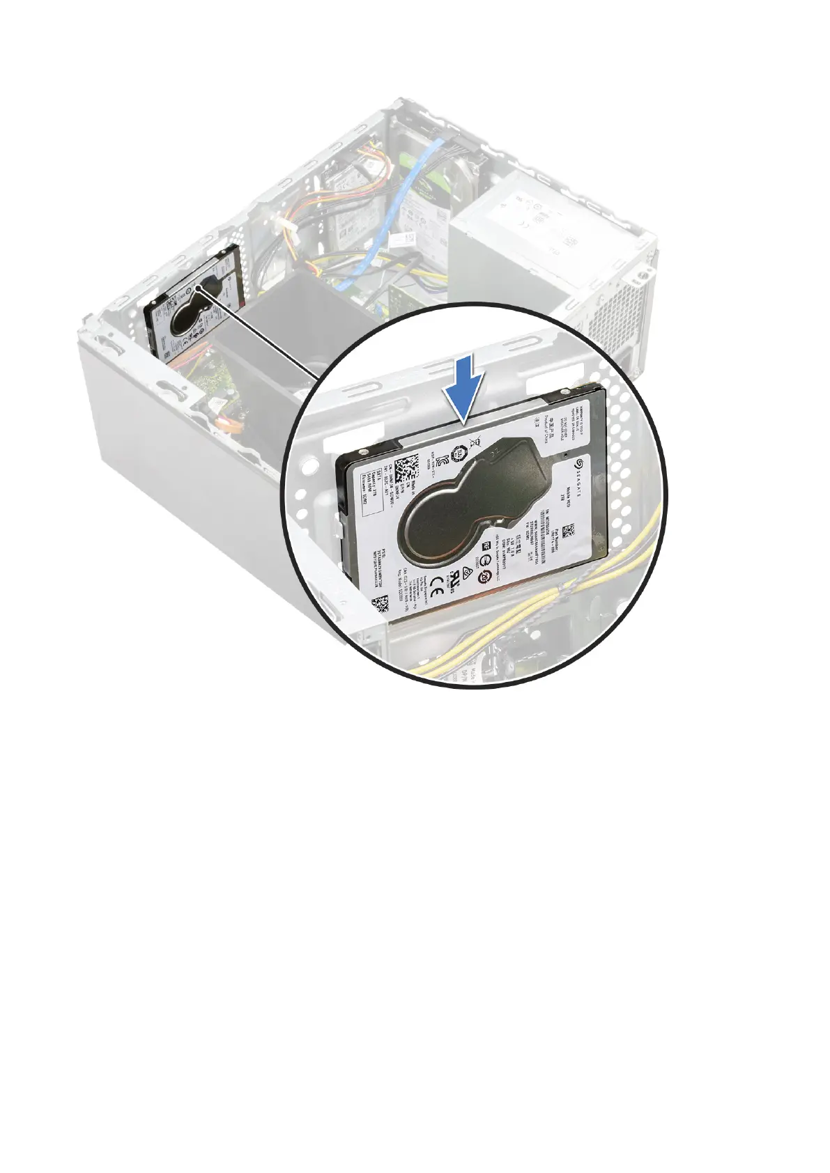 2. Install the two (M3x3.5) screws that secure the hard drive assembly to the base and front of the chassis.