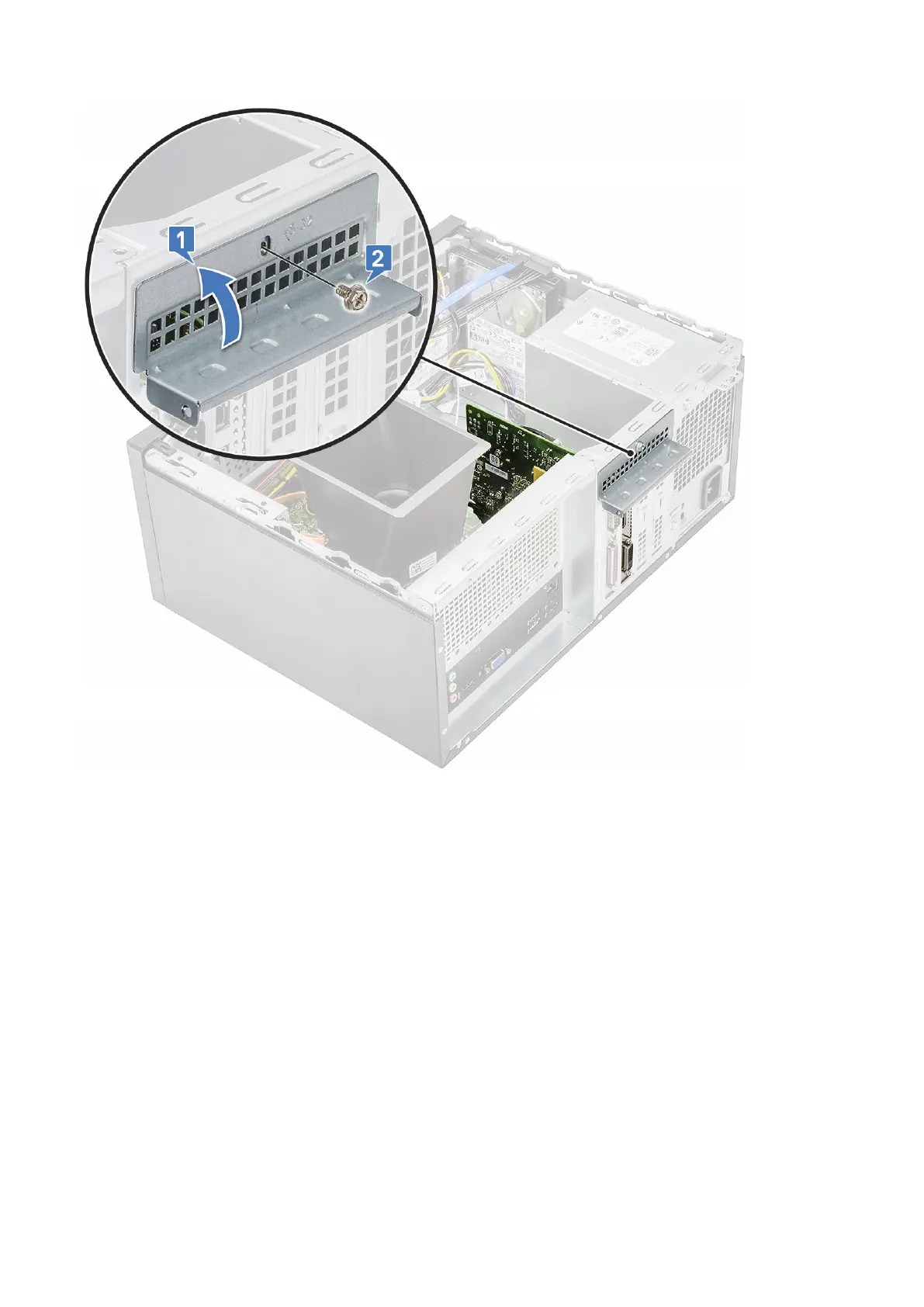 a) Remove the one (6-32x6.35) screw to remove the PCIe bracket [1, 2].