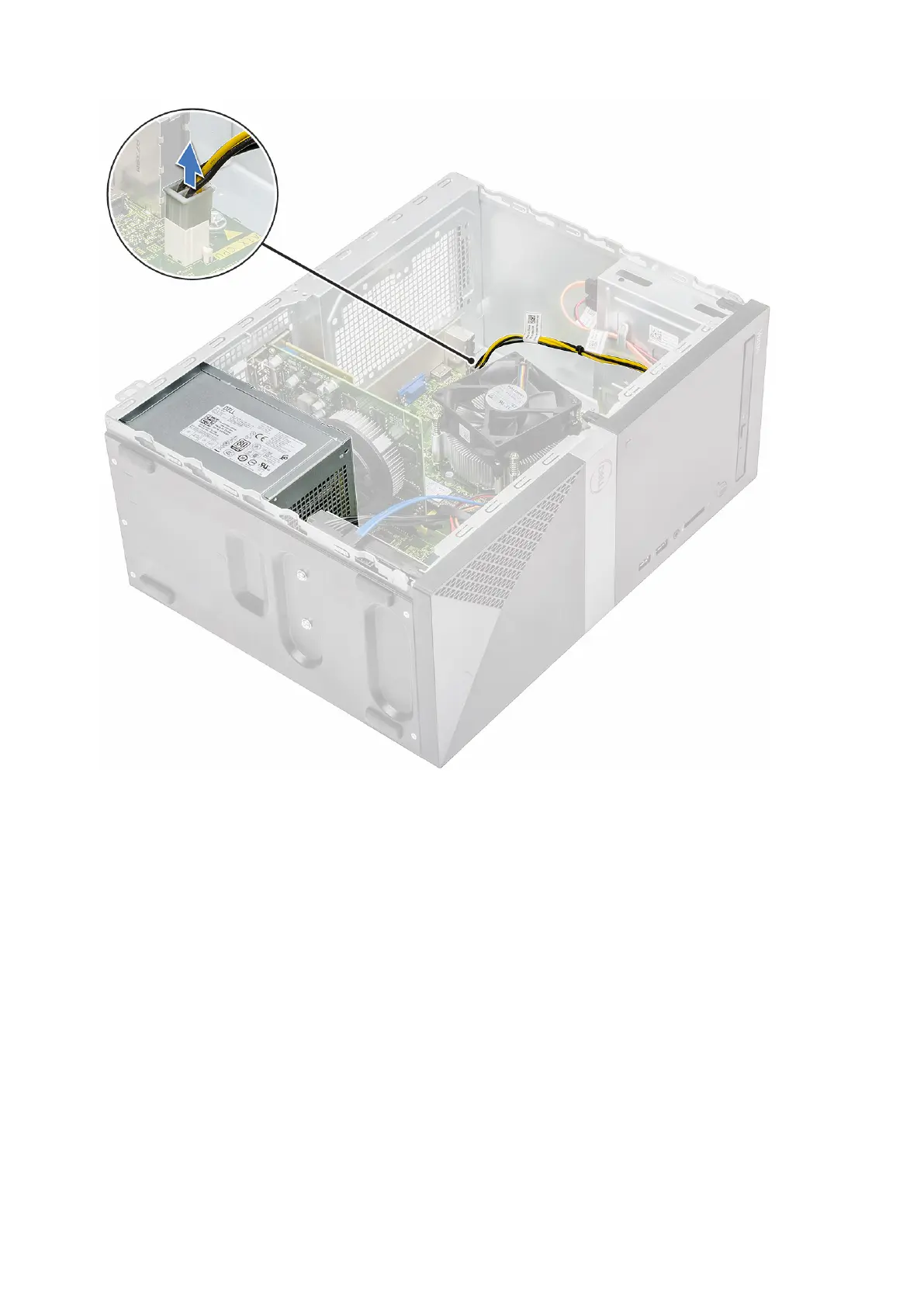 b) Unroute the PSU cables from the retention clips [1, 2, 3].