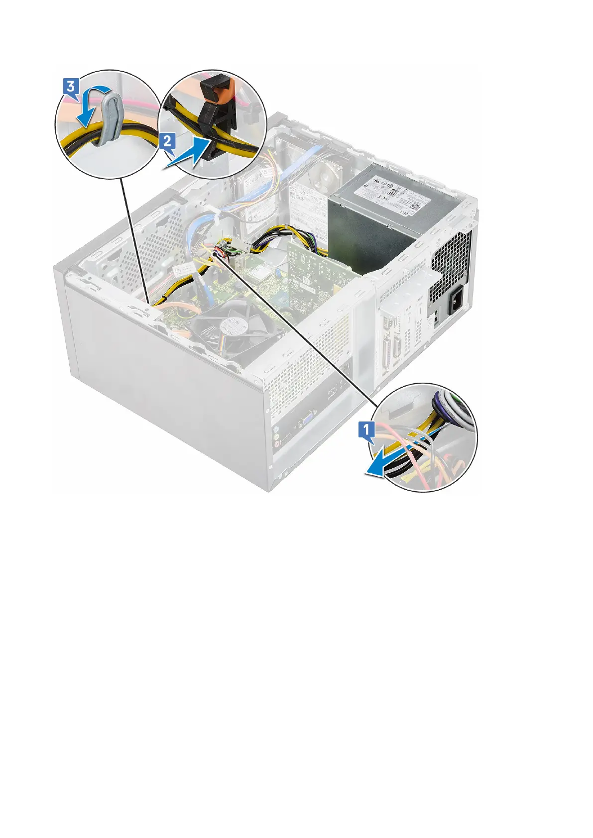 4. Connect the PSU cables to the connectors on the system board.