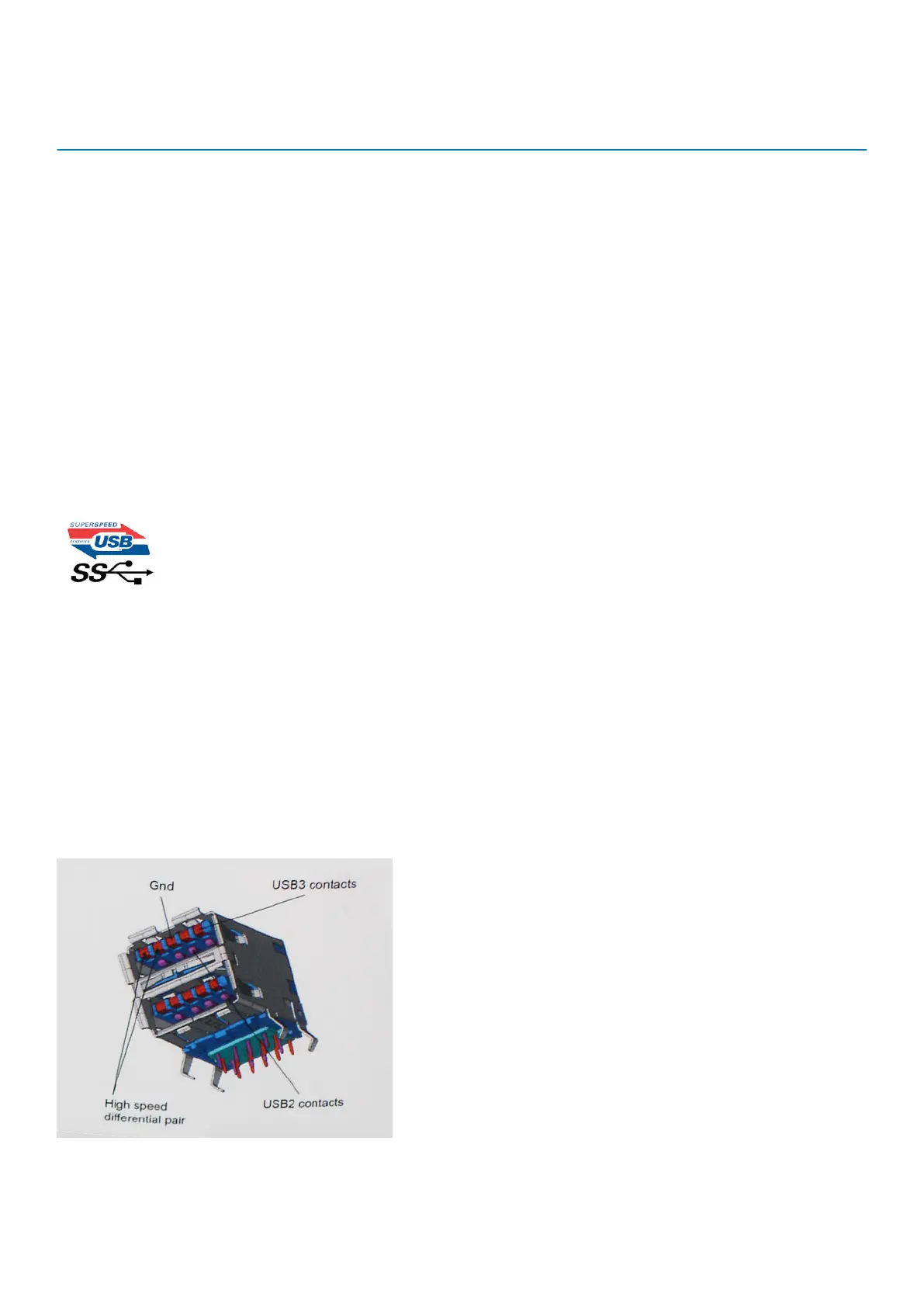• USB 2.0 previously had four wires (power, ground, and a pair for differential data); USB 3.0/USB 3.1 Gen 1 adds four more for two