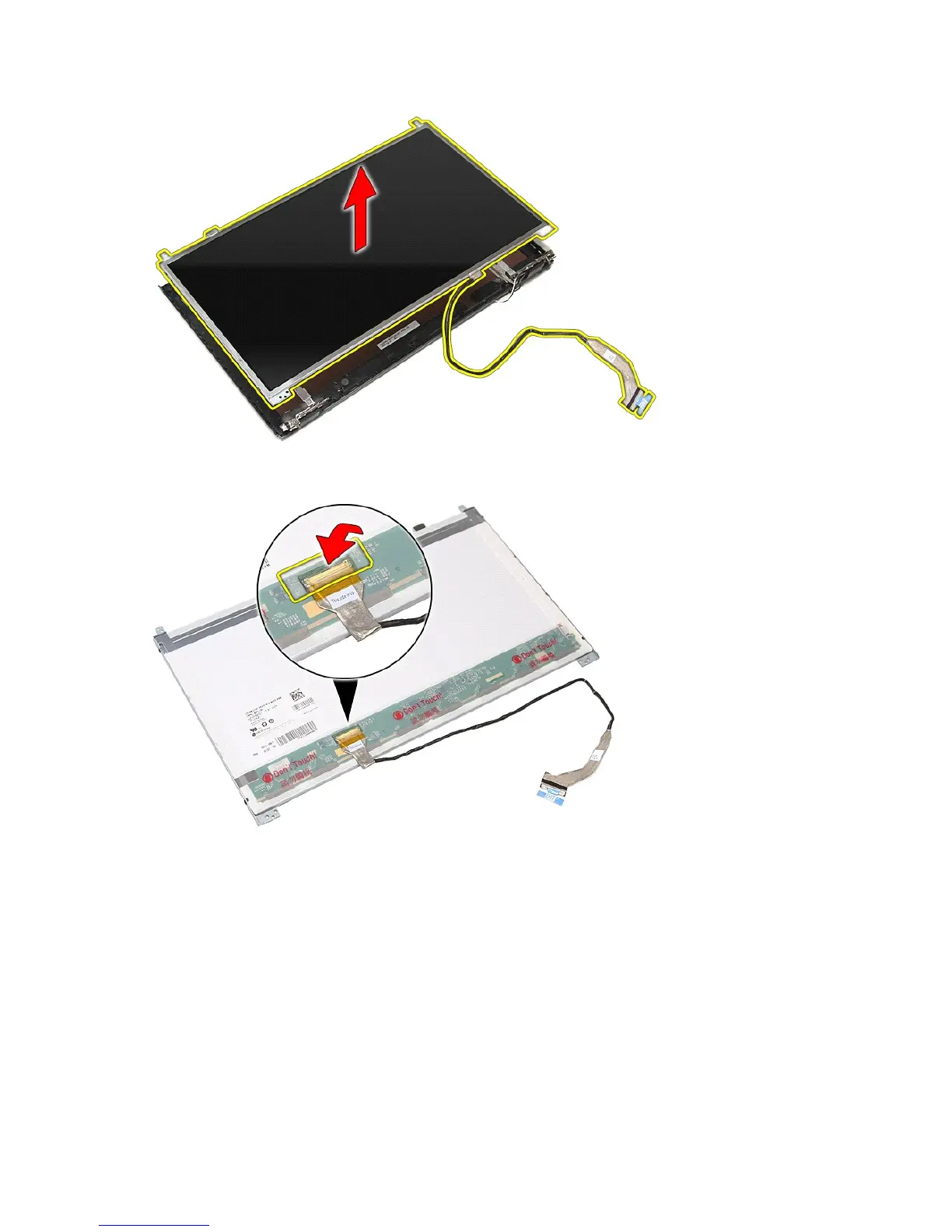 15. Remove the tape that secures the display cable to the dispaly panel.