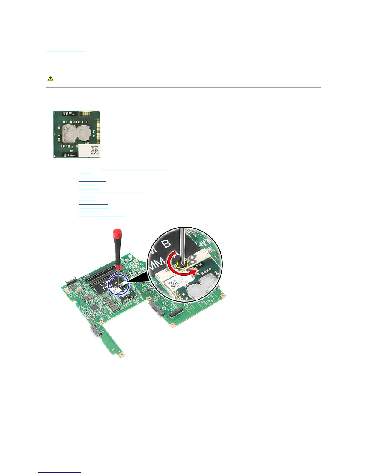 14. Using a flat-blade screwdriver, rotate the cam screw counterclockwise to release the processor from its socket on the system board.