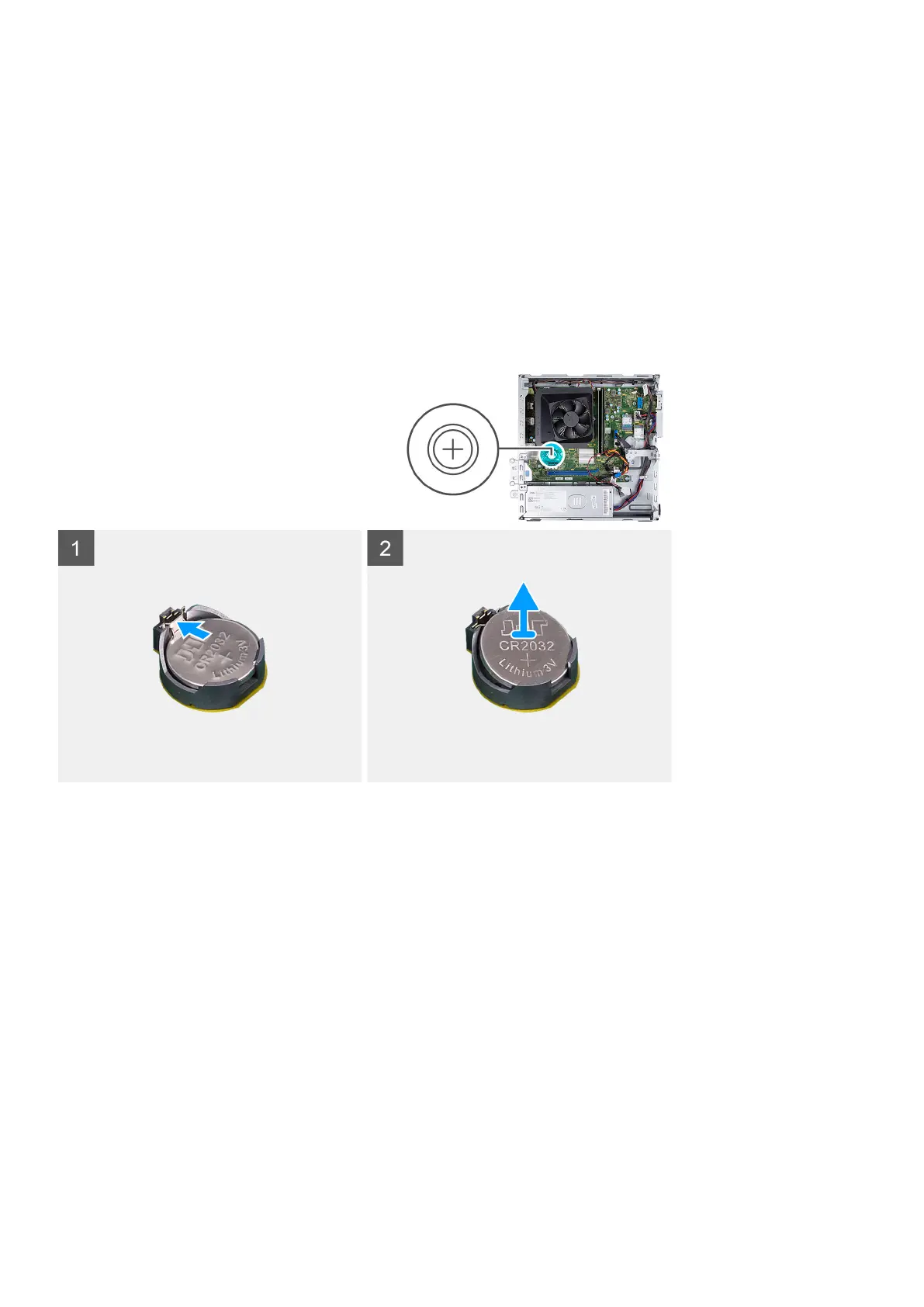 The following image(s) indicate the location of the coin-cell battery and provides a visual representation of the removal