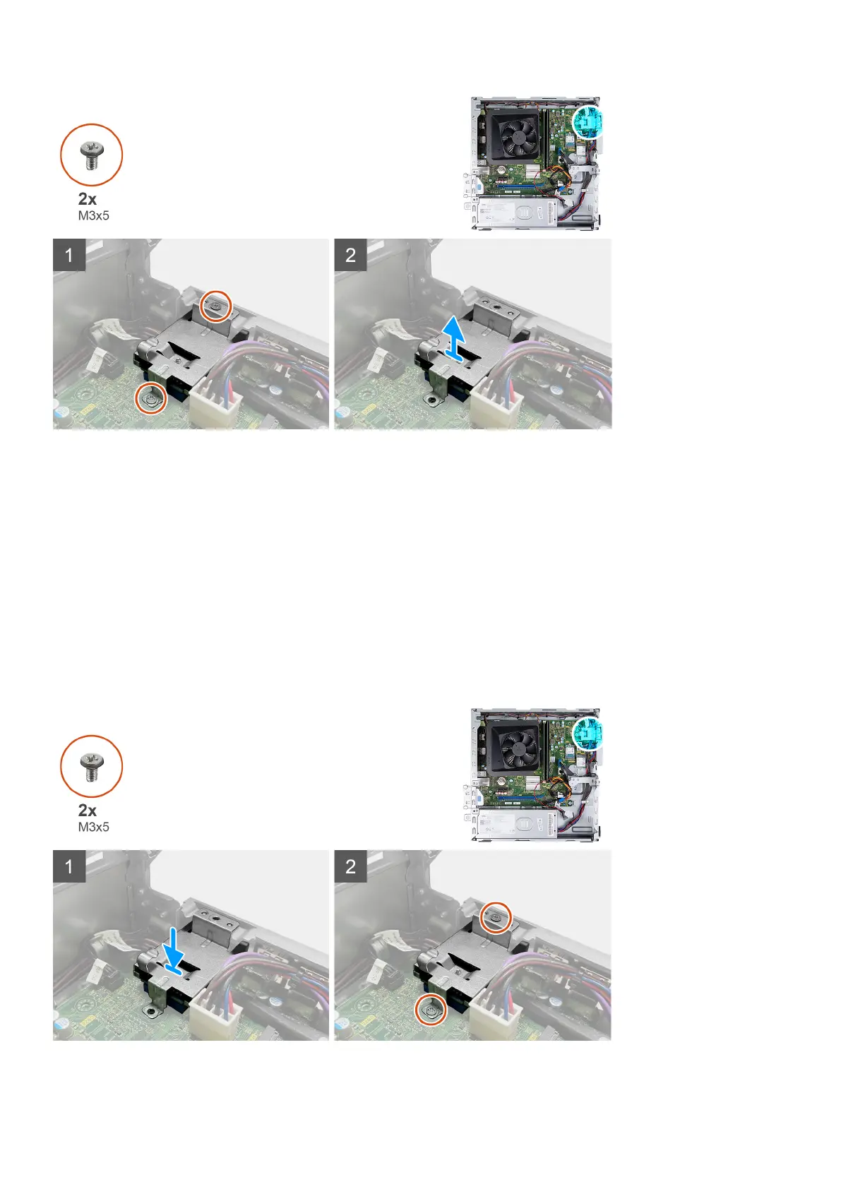 1. Remove the two screws (M3x5) that secure the media-card reader bracket to the system board and the chassis.