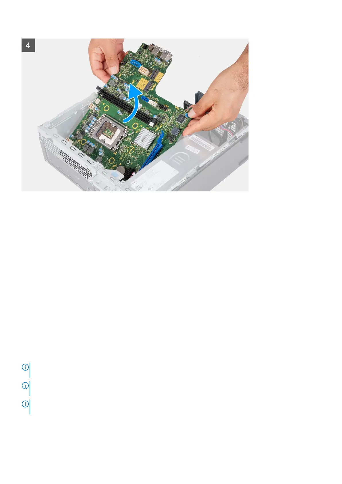 The following image(s) indicate the location of the system board and provides a visual representation of the installation