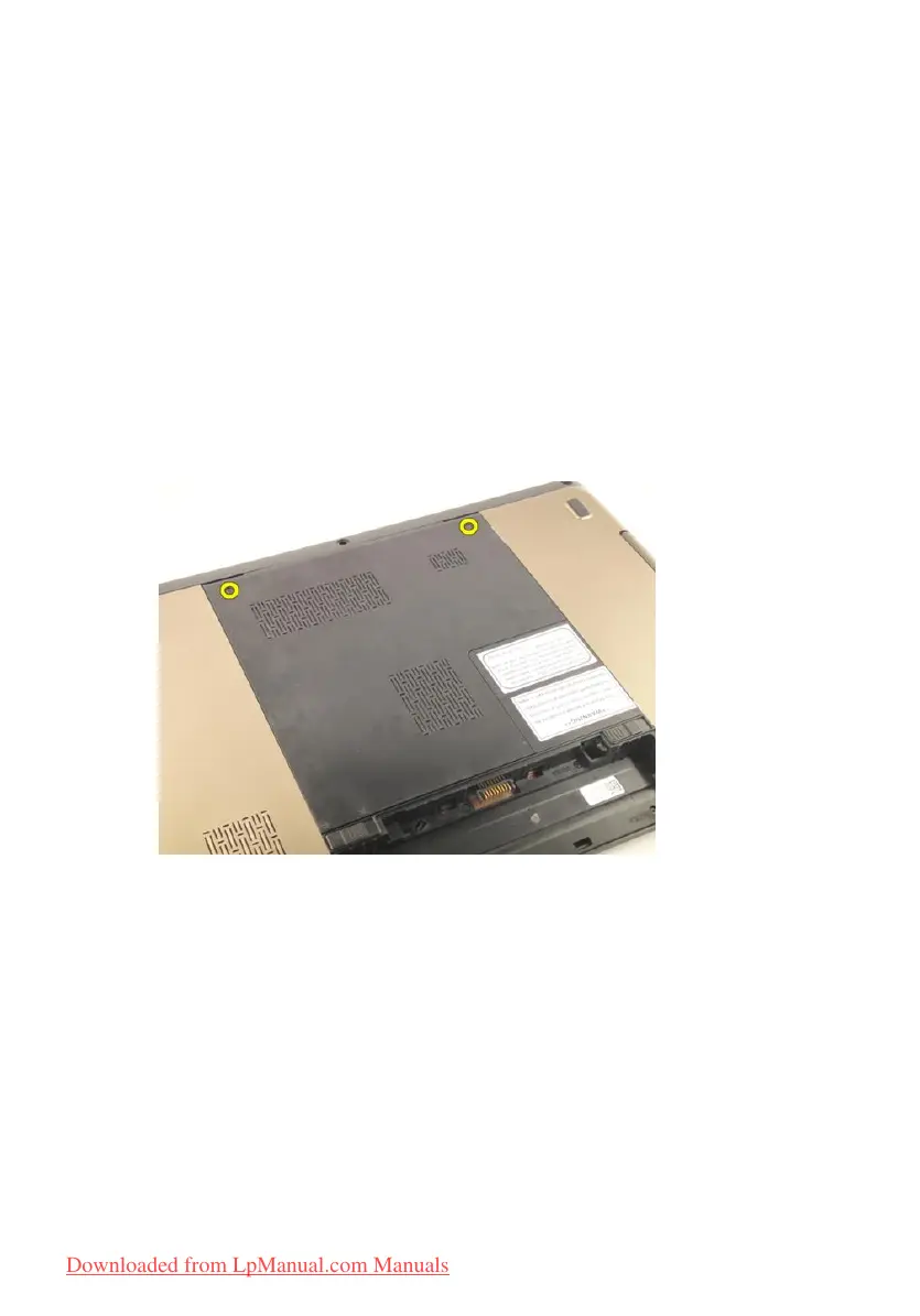 4. Pry up the memory door near the screw hole, lift, and remove it.