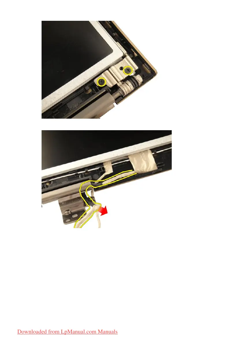 16. Release the WLAN antenna cable from the trough as shown in the image