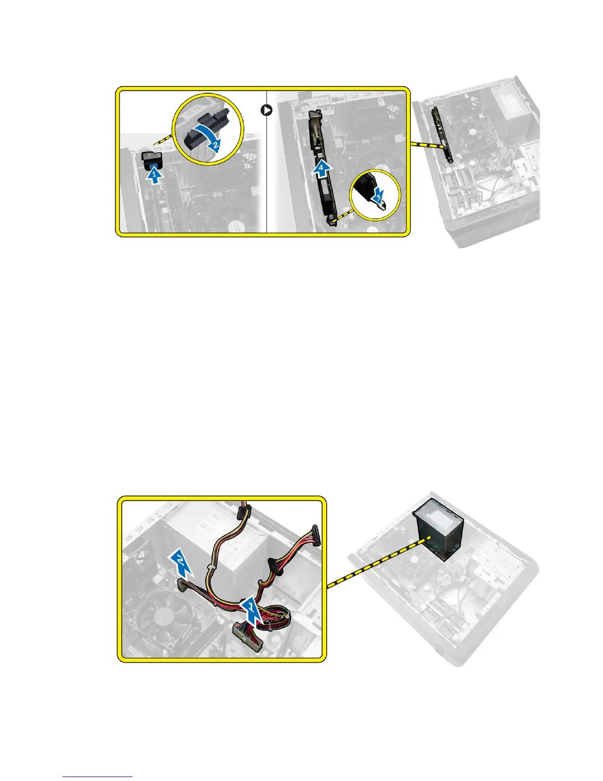 3. Disconnect the following power supply cables from the system board by pressing on the retention