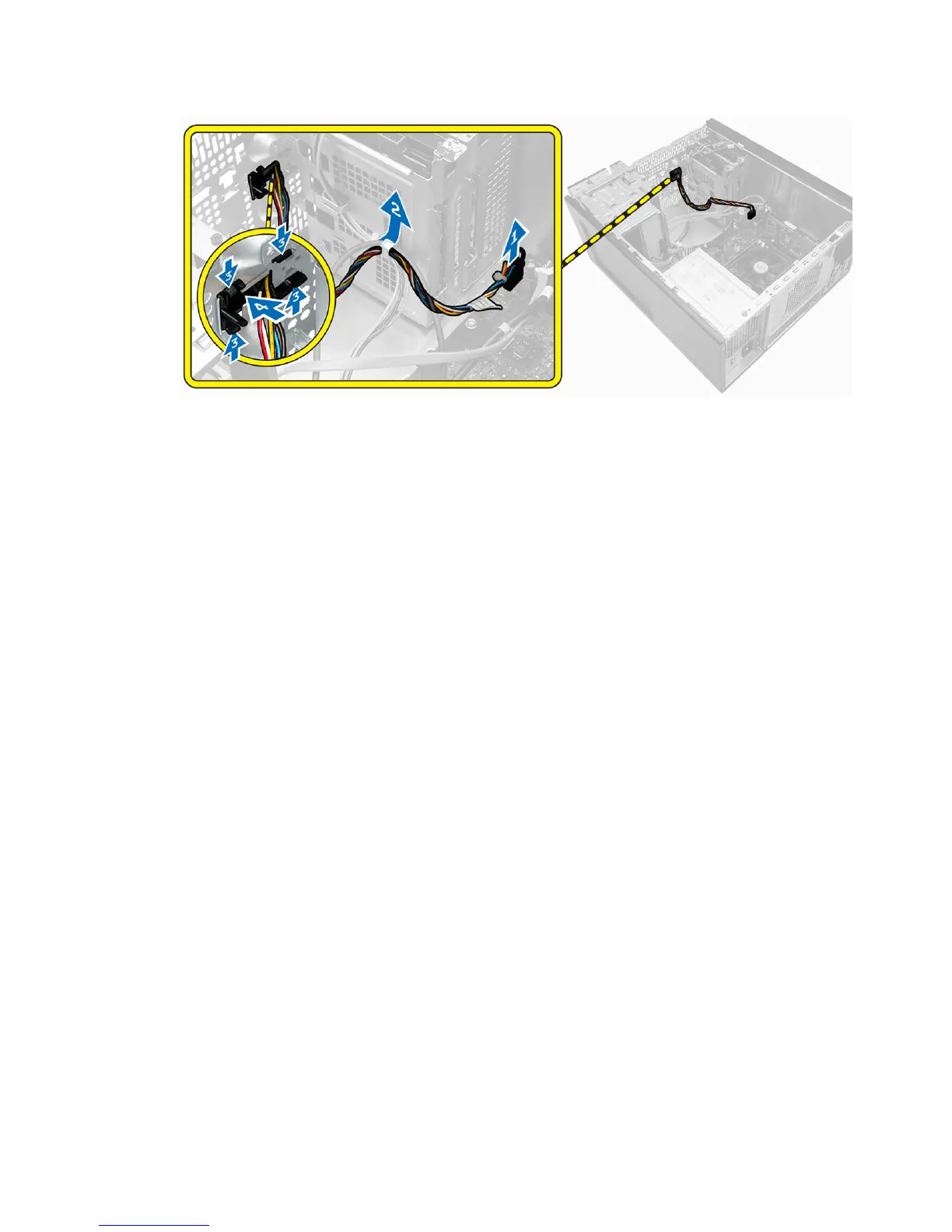 3. Route the power-switch cable through the metal clip.