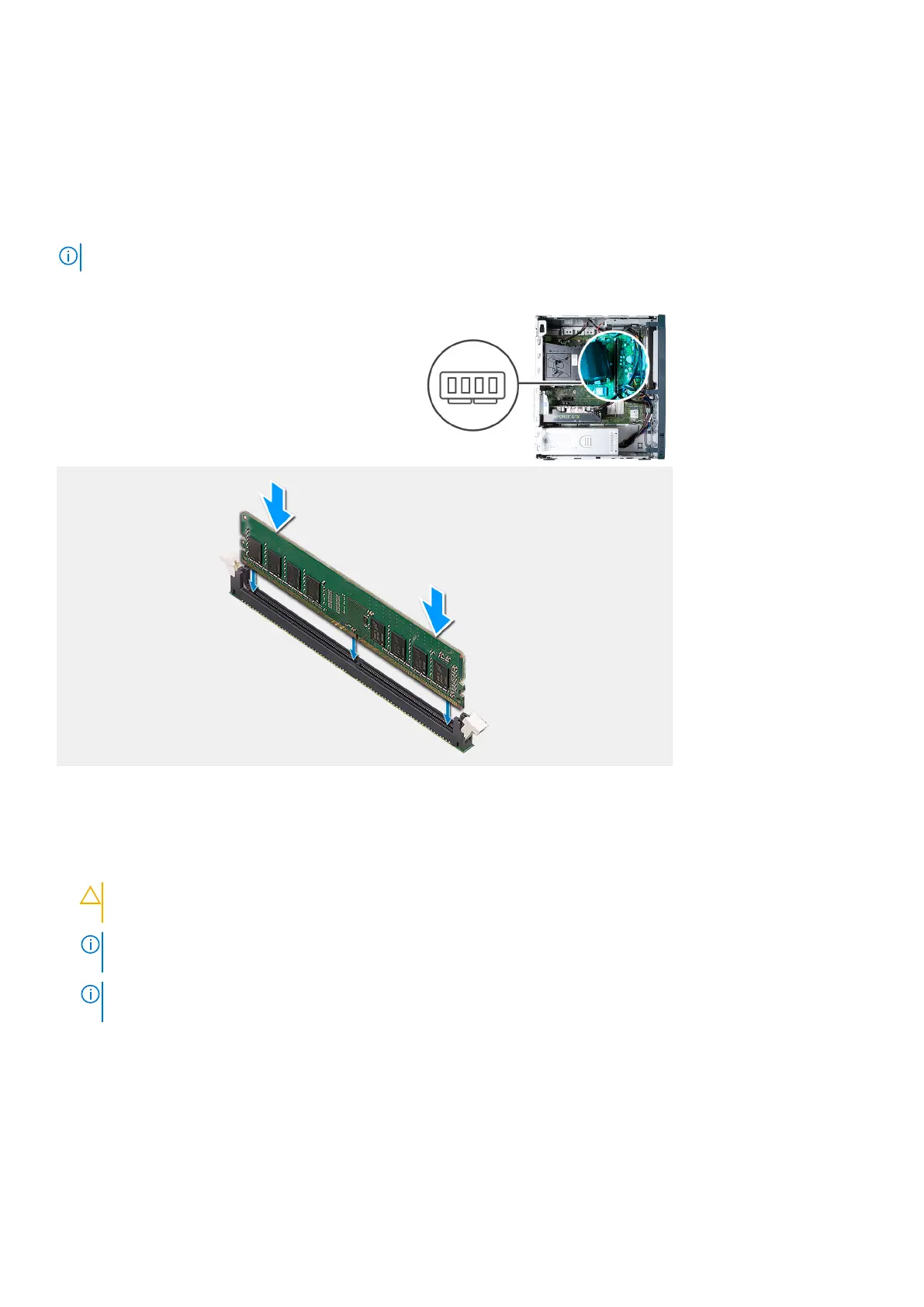 3. Press down on the memory module until the memory module snaps into position and the securing clip locks in place.