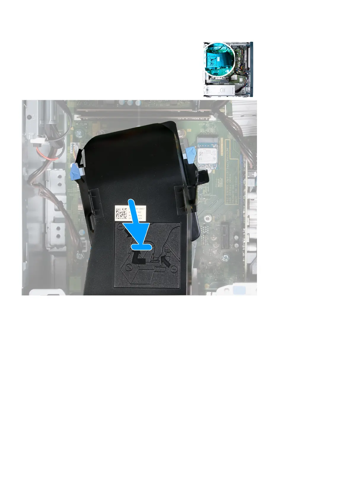 2. Press the fan shroud against the fan and heat sink assembly to snap the fan shroud in place.