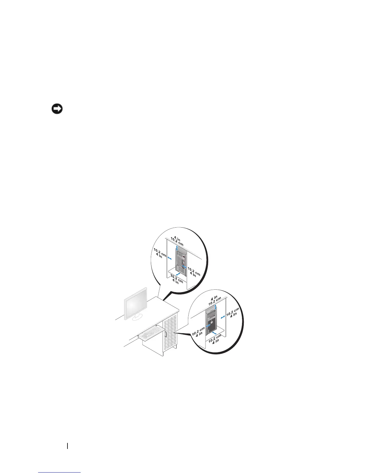 least 5.1 cm (2 in.) clearance from the back of the computer to the wall to