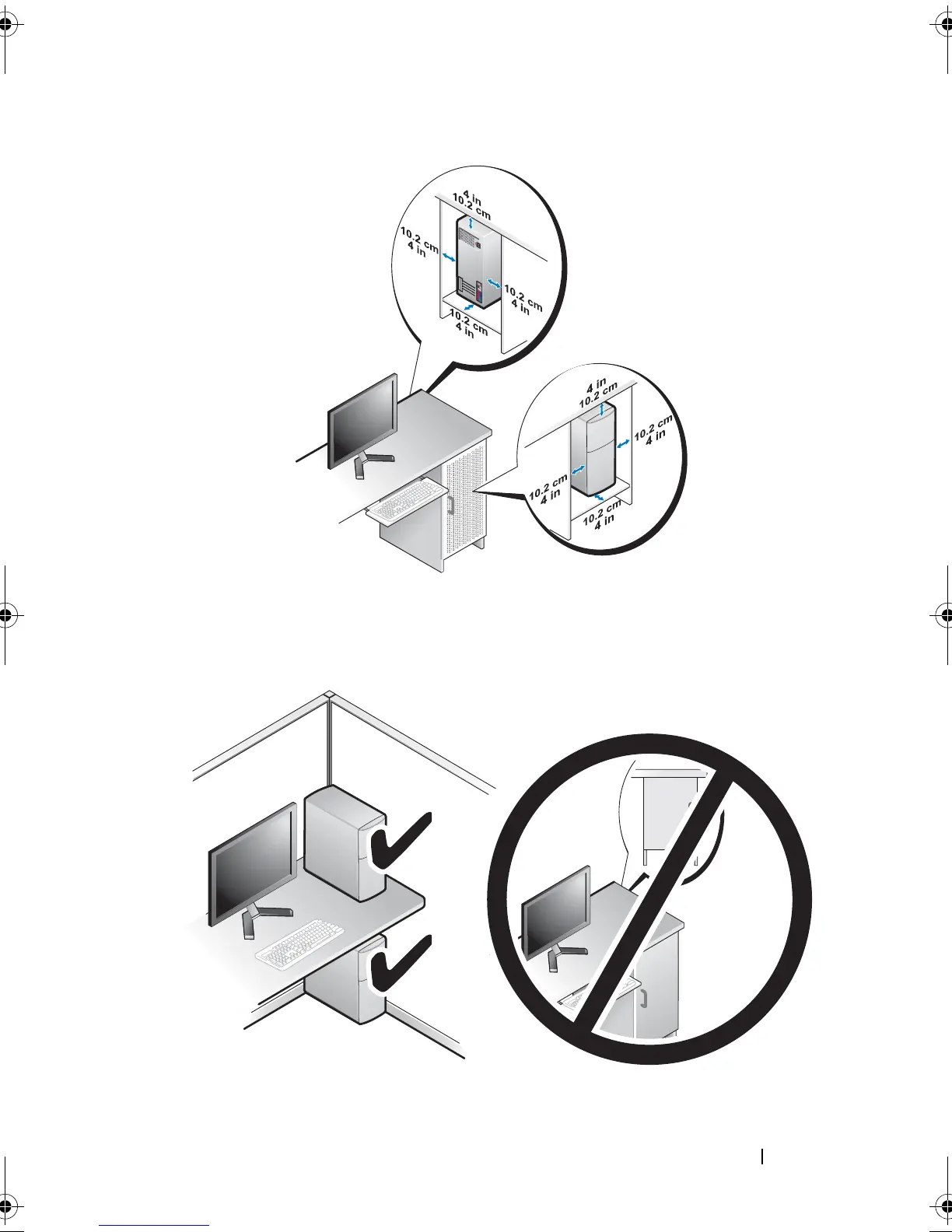 least 5.1-cm (2-in) clearance from the back of the computer to the wall to