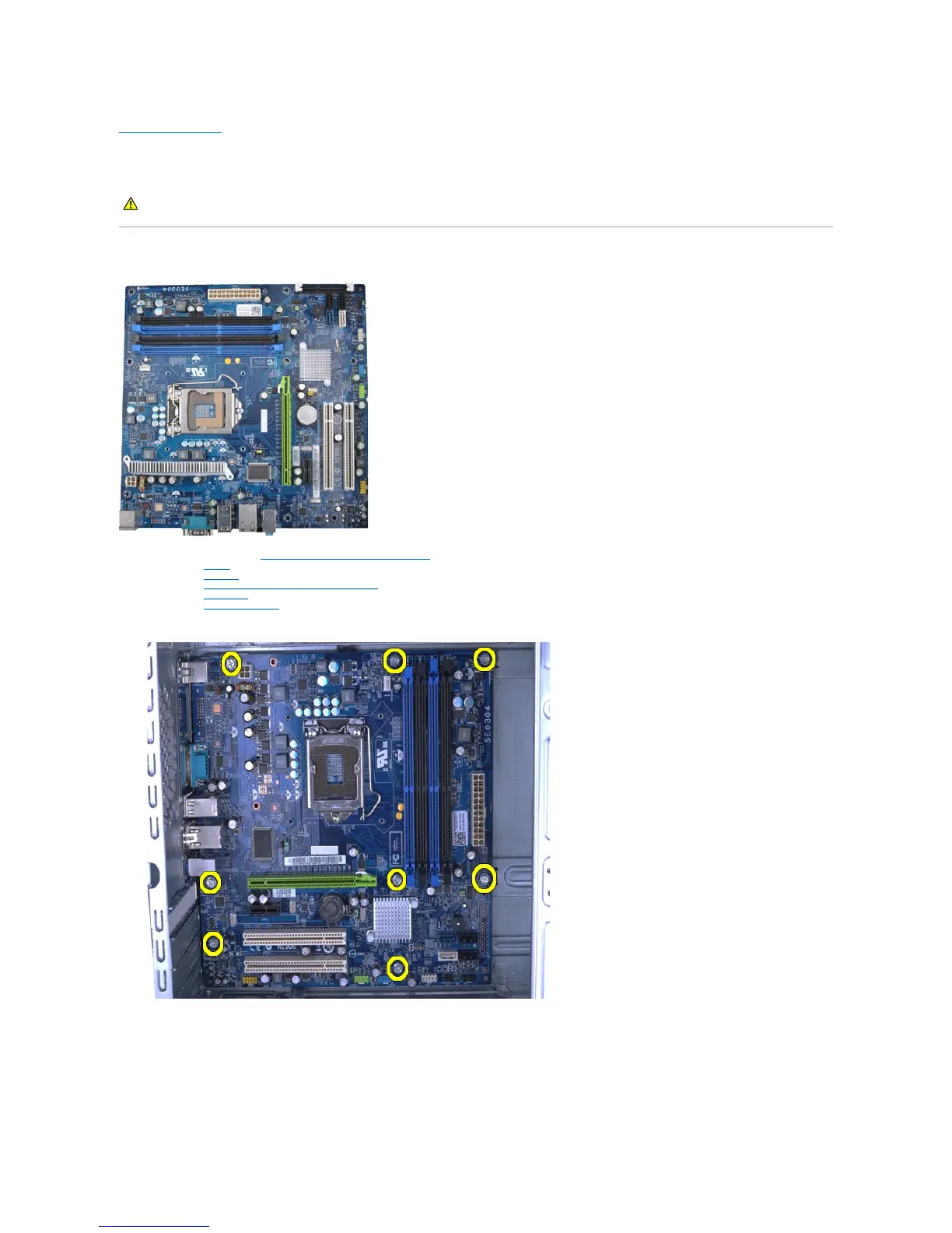 8. Using a Phillips head screwdriver, remove the nine screws that secure the system board to the computer chassis.