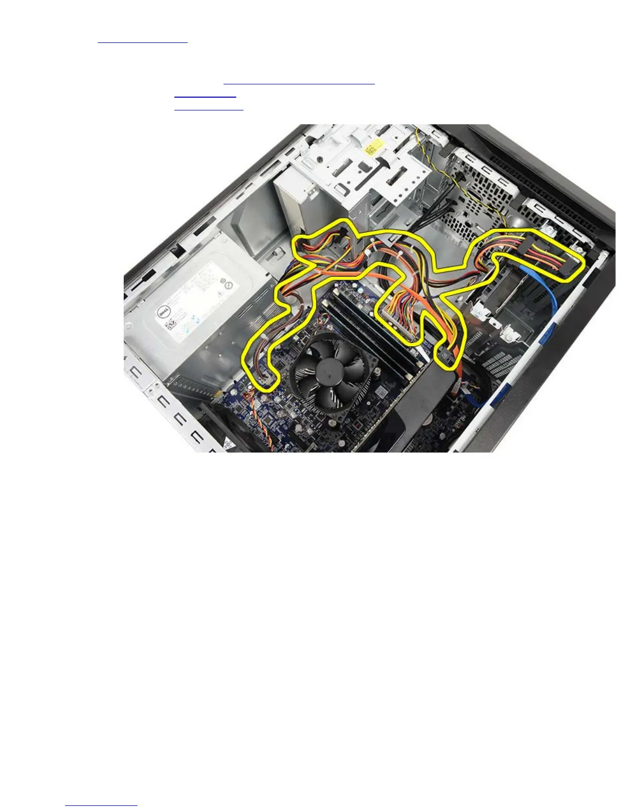 4. Disconnect and unthread the power cables from the system board, expansion cards, and drives.