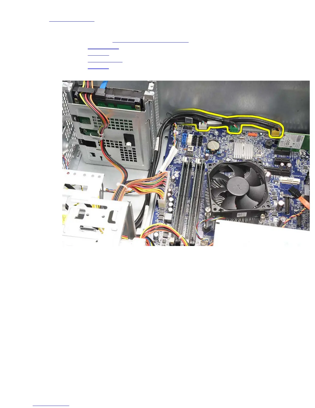 6. Disconnect the three front I/O cables from the system board. Unthread the cables from the securing clips, if present, that