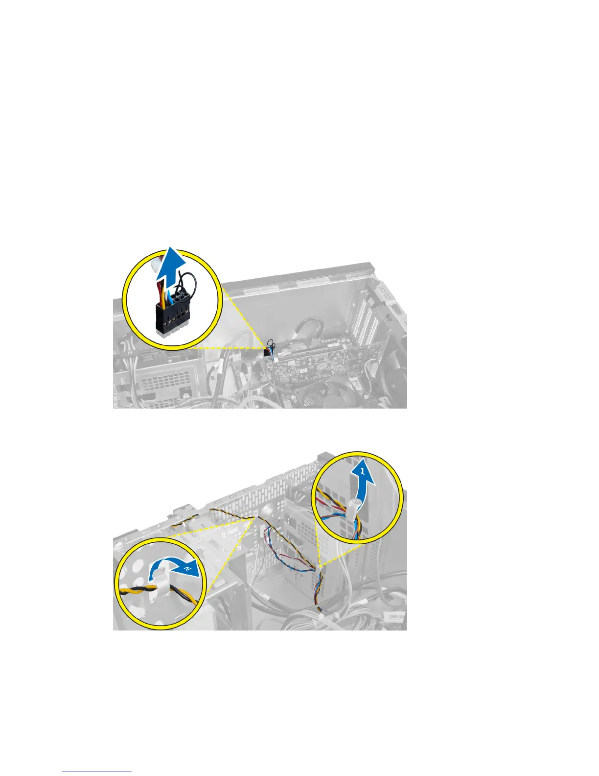 6. Unthread the hard drive activity LED cable from the routing clips near the front bezel.