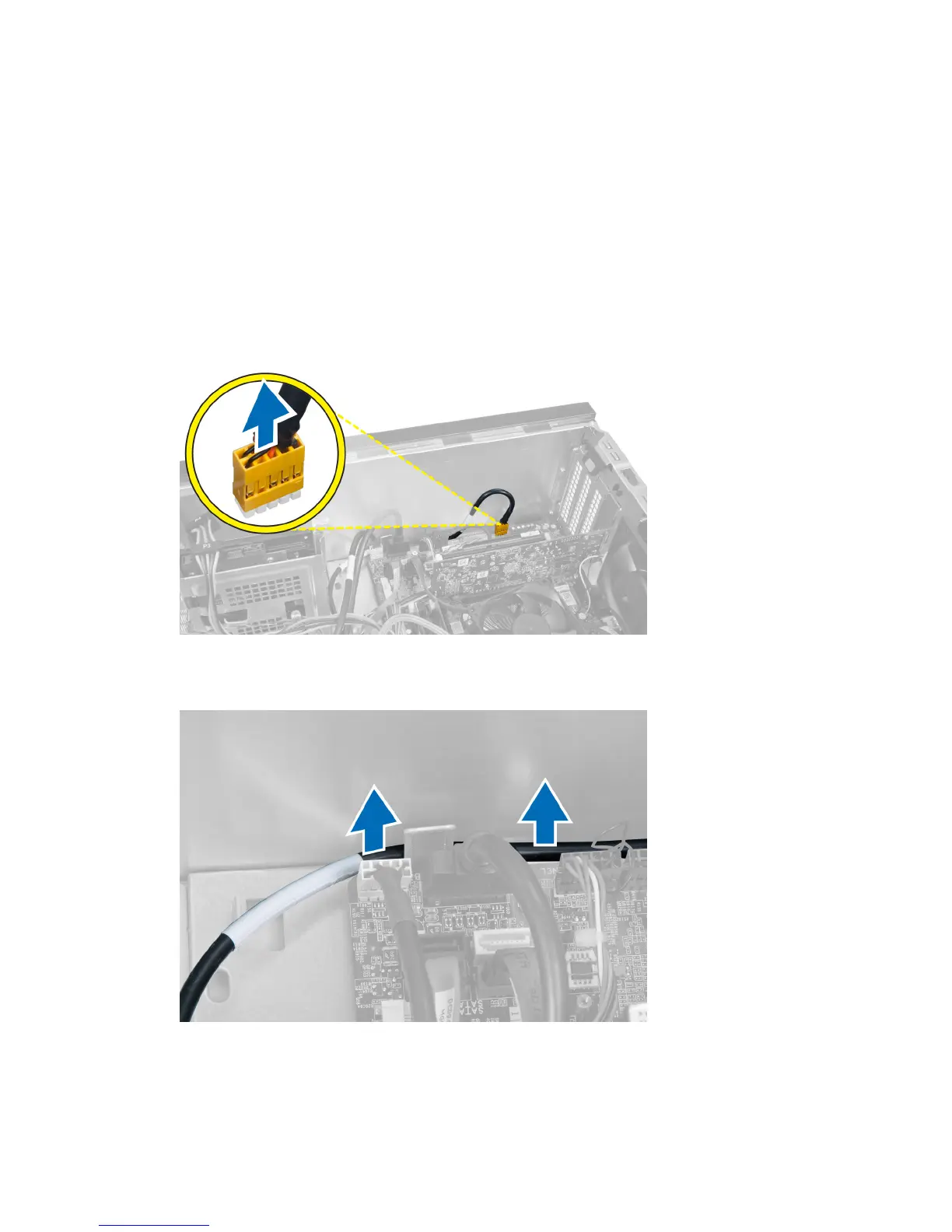 5. Remove the front audio module routing cable through the routing clips on the chassis.