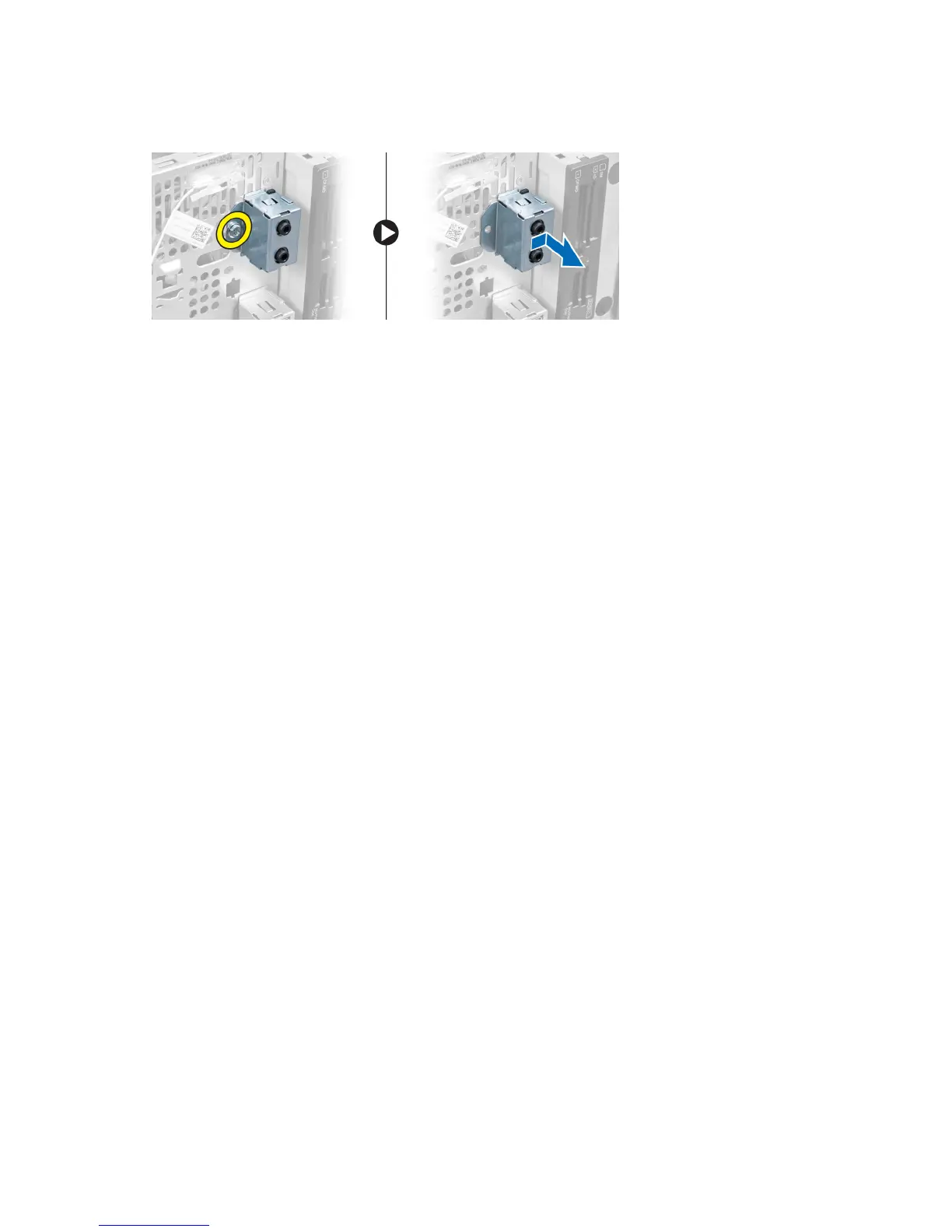 6. Remove the screw that secures the front audio module to the front bezel and remove the front audio module from