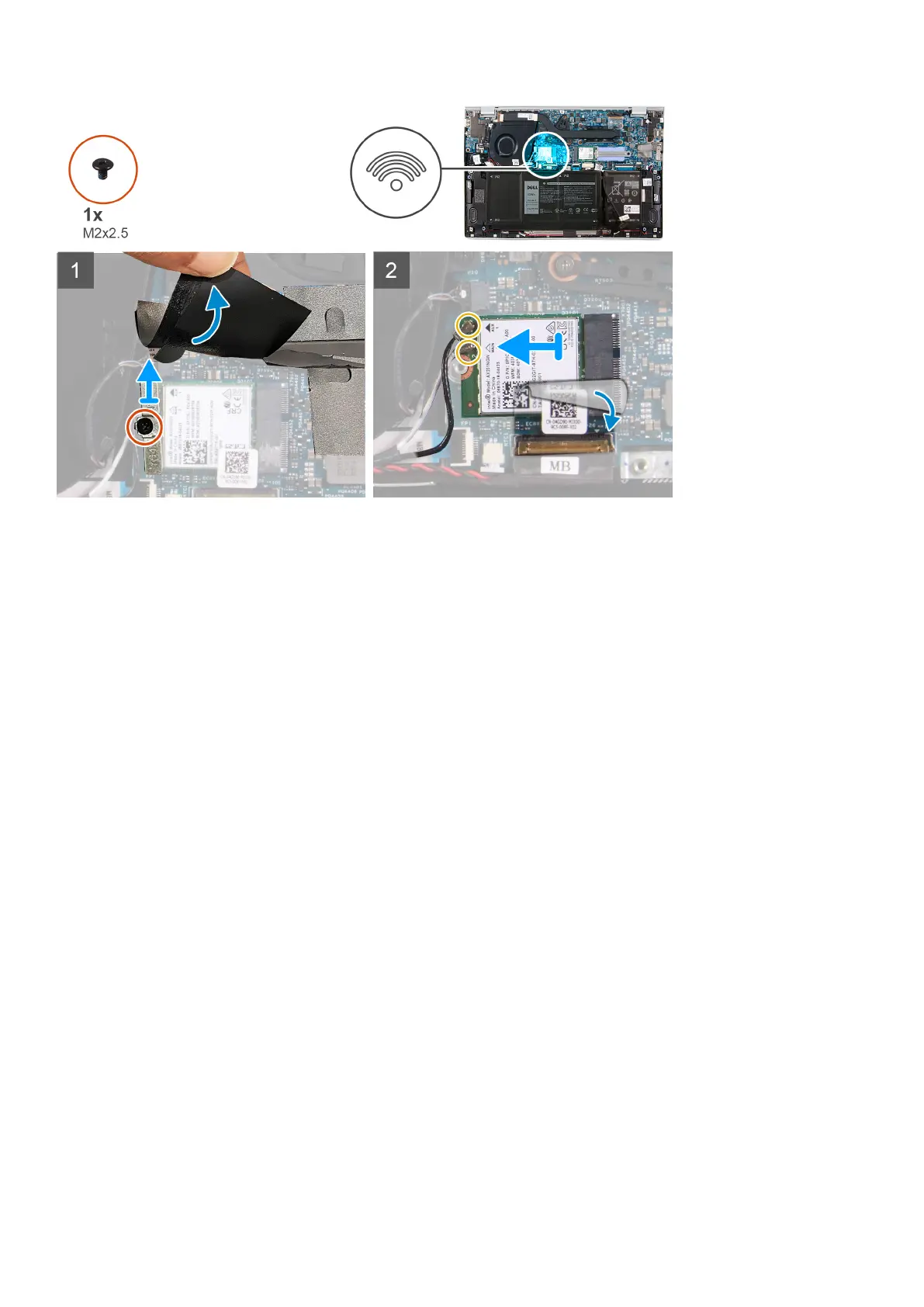 4. Peel off the tape that secures the wireless card to the system board.