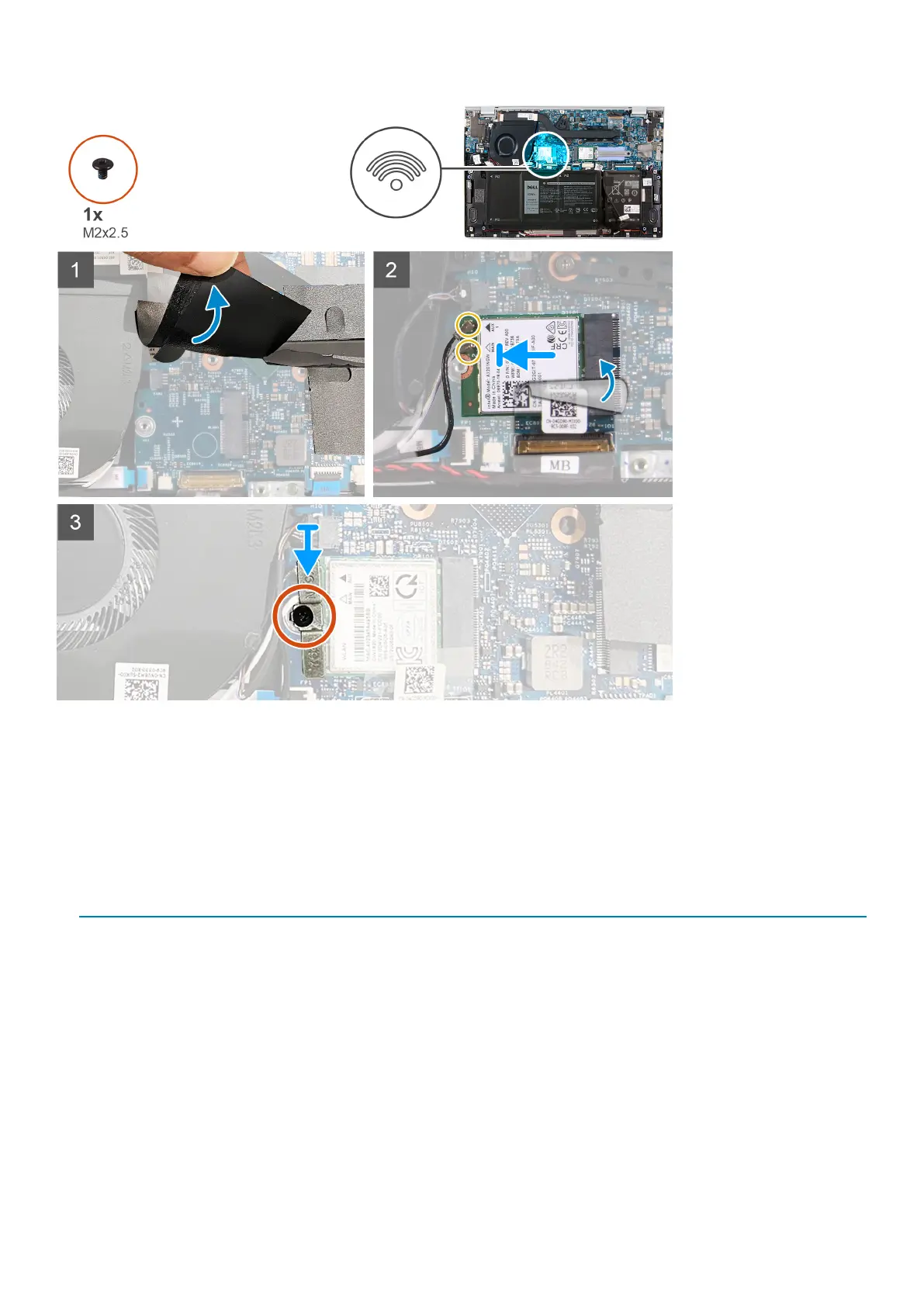 6. Replace the screw (M2x2.5) to secure the wireless-card bracket to the wireless card.