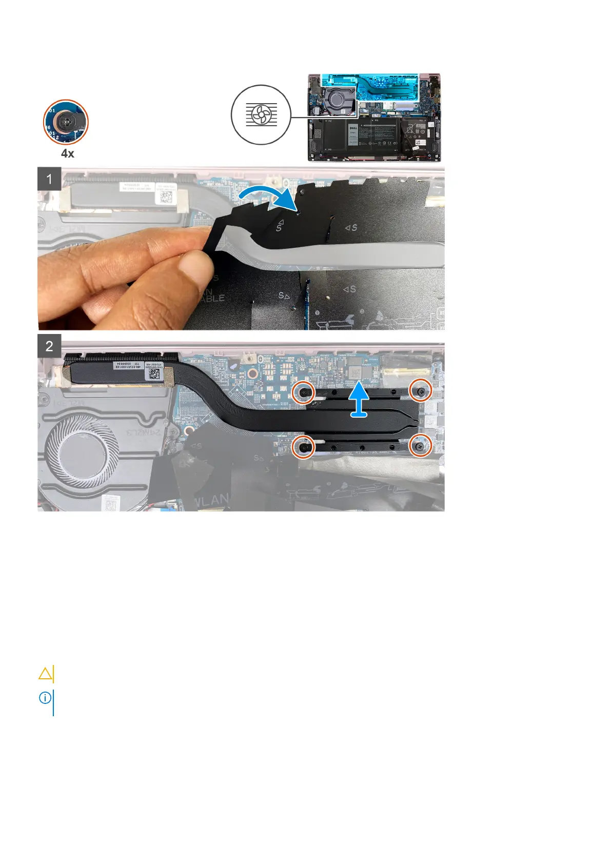 2. In reverse sequential order (as indicated on the heat sink), loosen the four captive screws that secure the heat sink to the