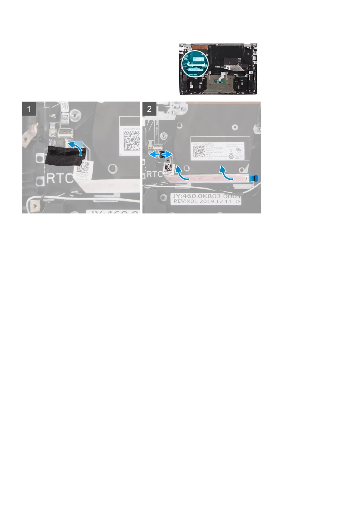 1. Peel off the mylar tape that secures the power button with fingerprint reader cable connection.
