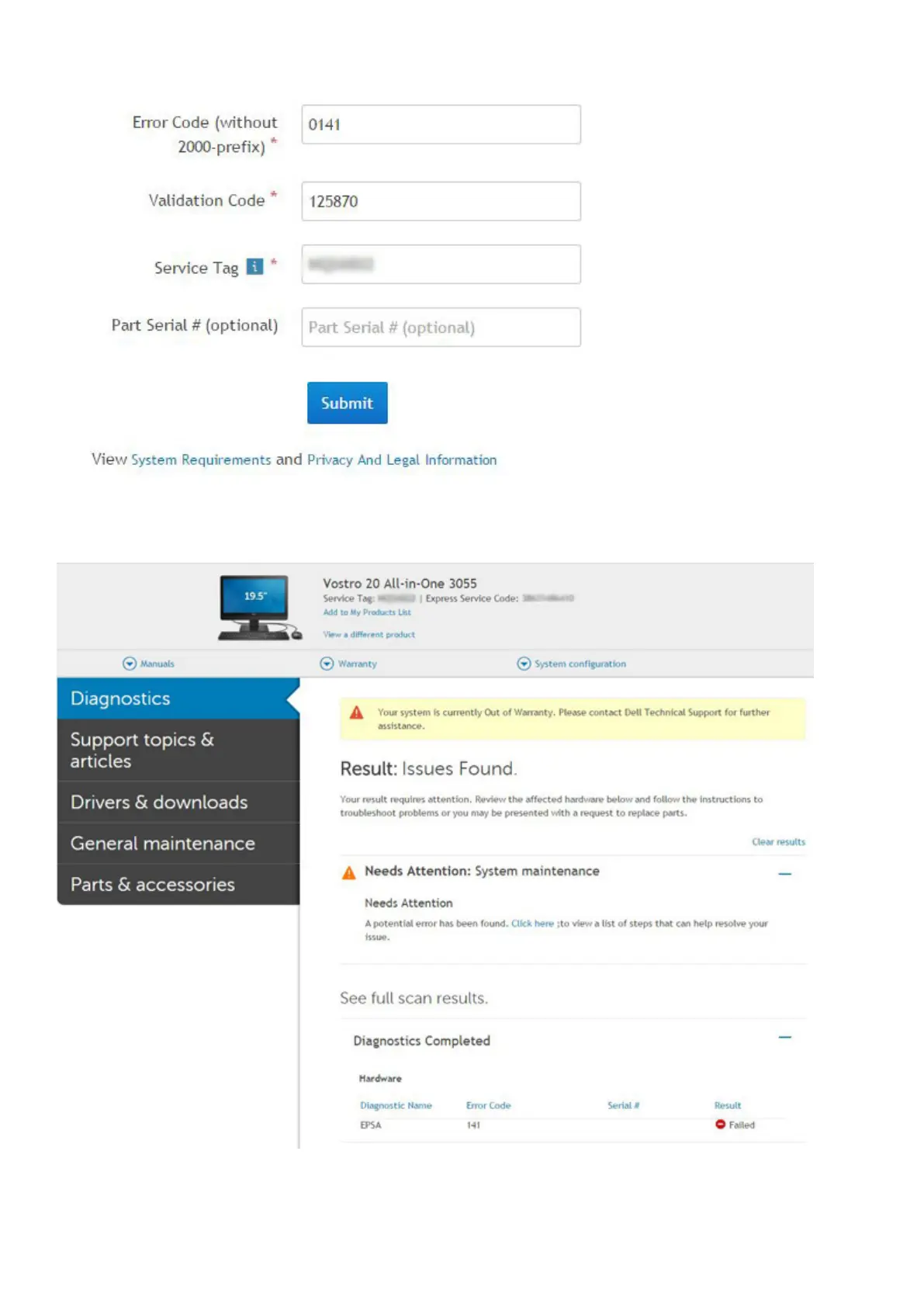 After entering the correct information, the online tools will direct the user to the above screen which contains information on :
