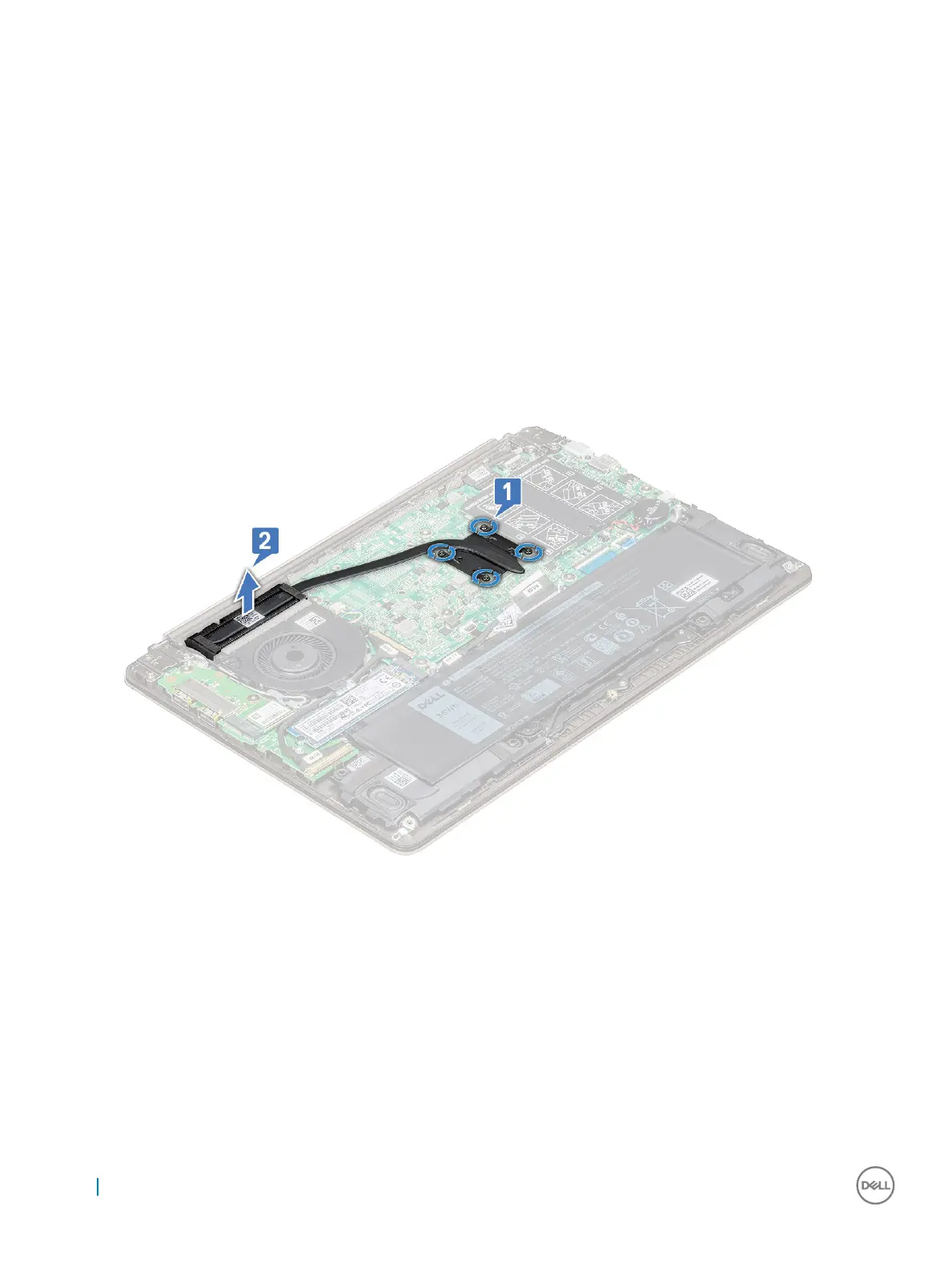 a In sequential order (as indicated on the heat-sink), loosen the four M2.0 x 4 screws that secure the heat sink to the system