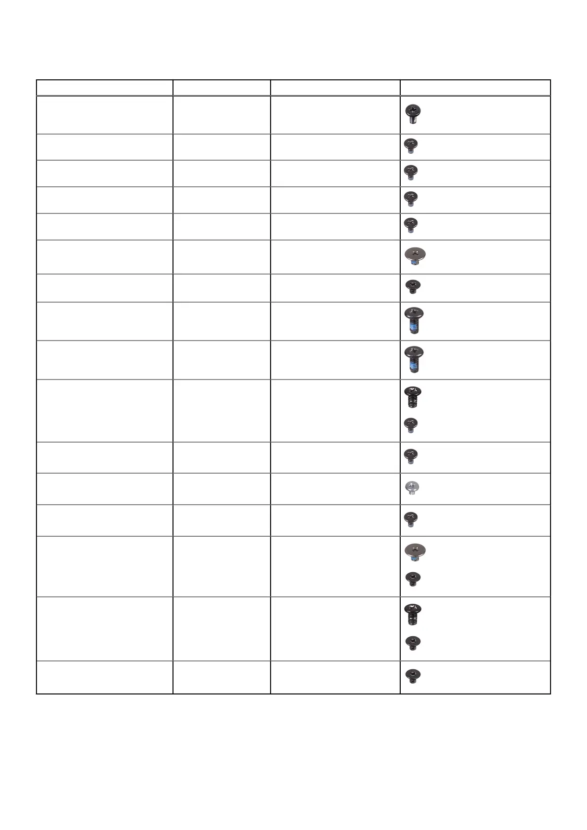 Component Screw type Quantity Screw image