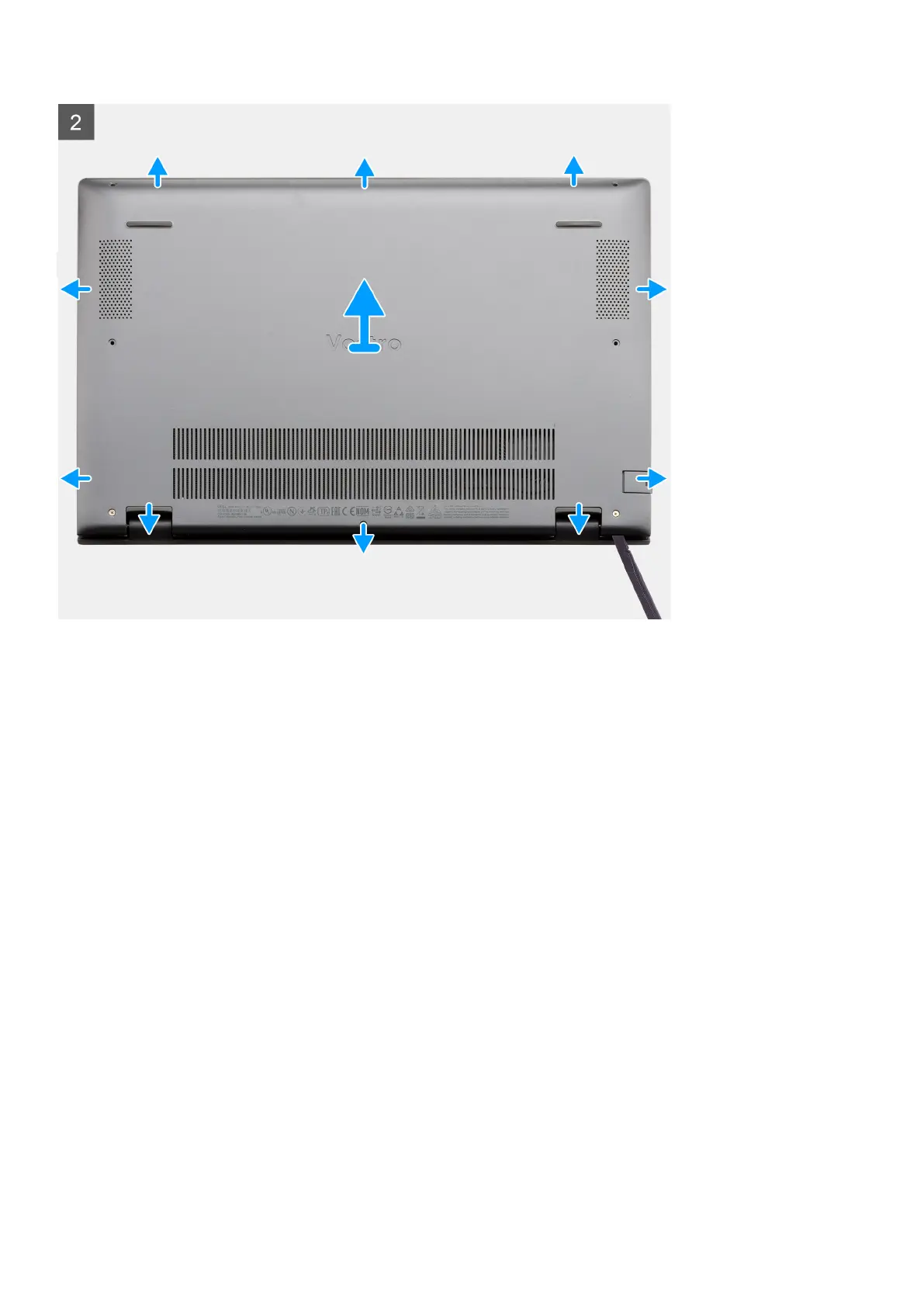 1. Remove the five screws (M2x4) that secure the base cover to the palm-rest and keyboard assembly.