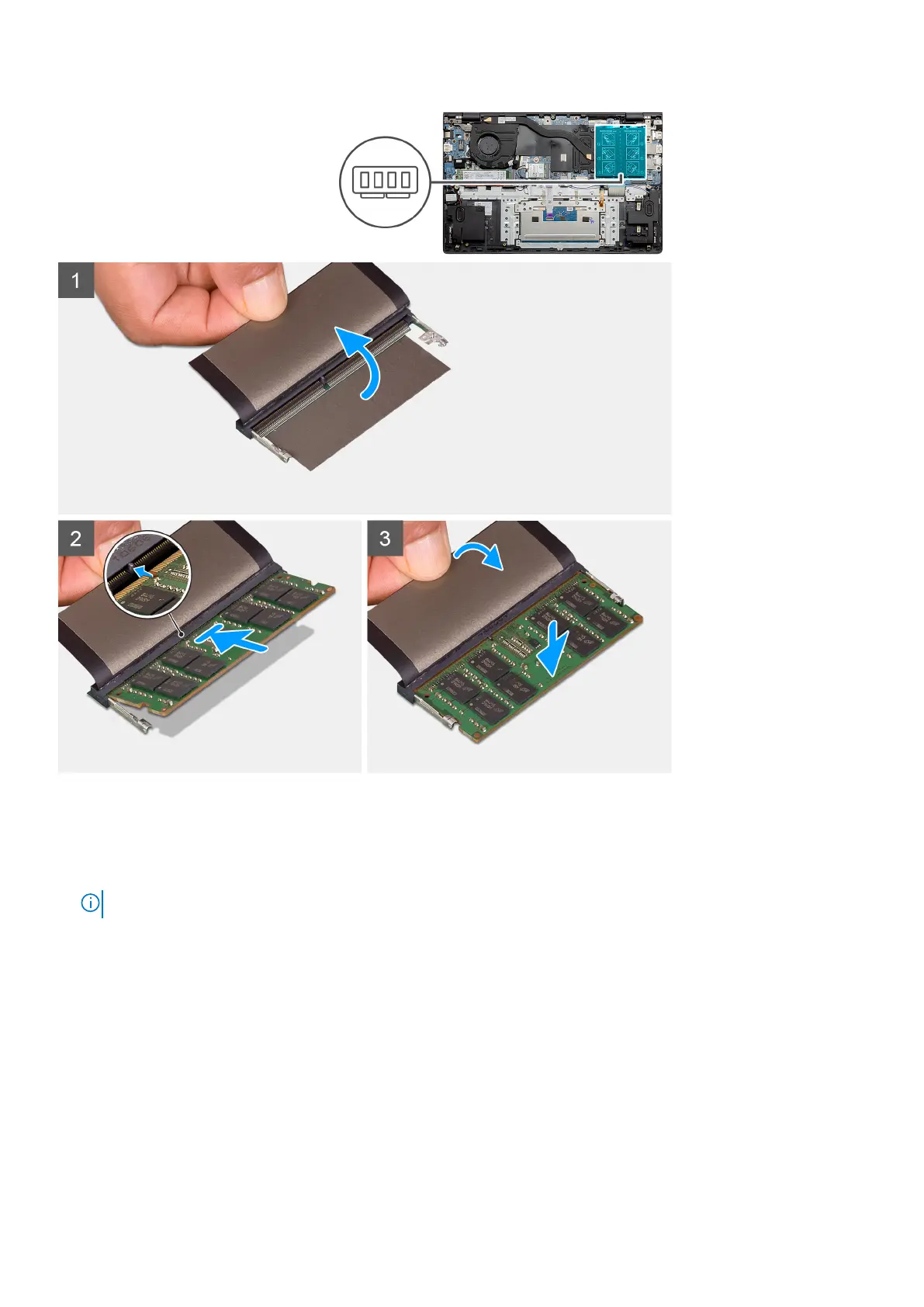 NOTE: If you do not hear the click, remove the memory module and reinstall it.
