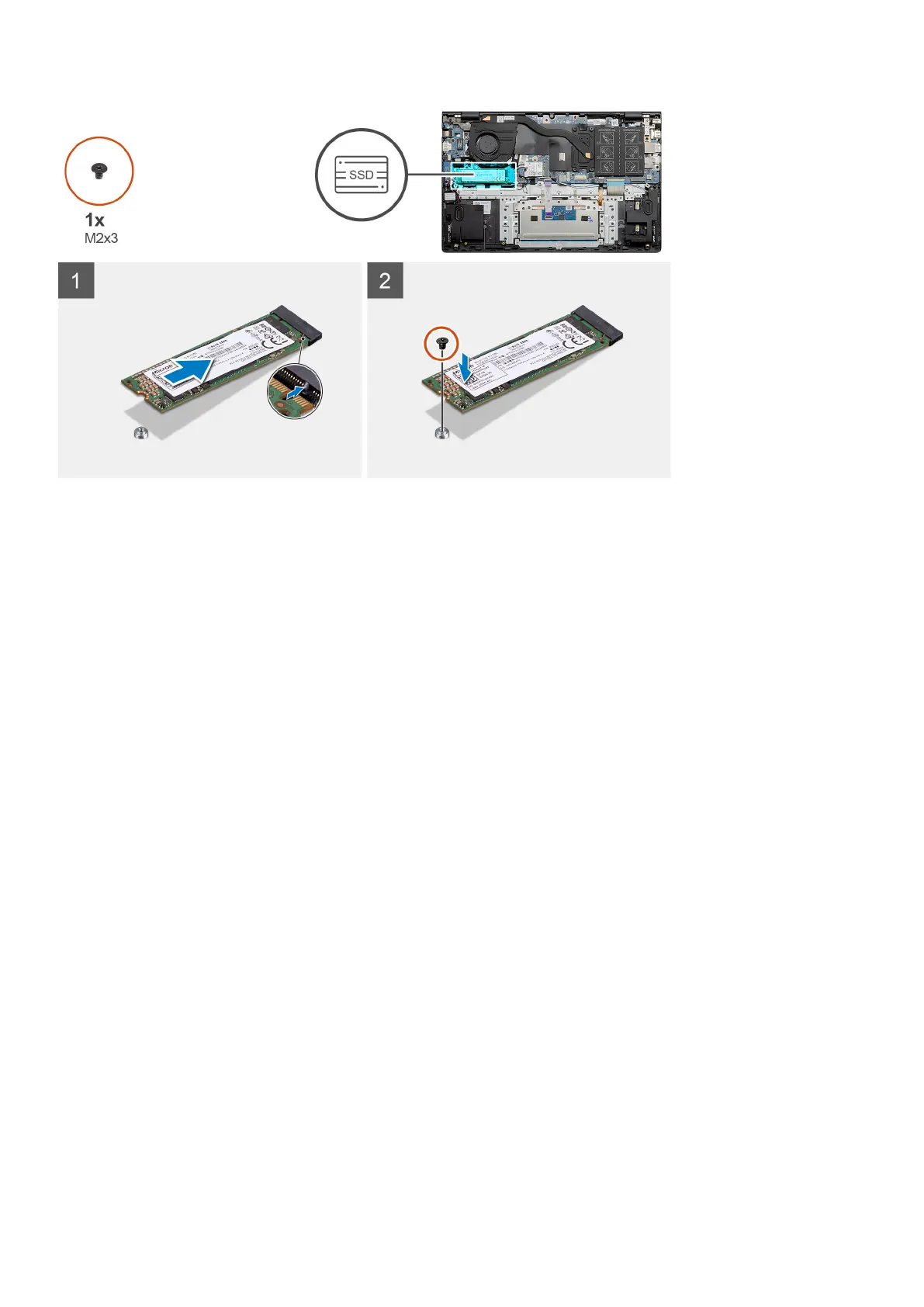 2. Replace the single (M2x3) screw to secure the solid-state drive module to the palm-rest and keyboard assembly.