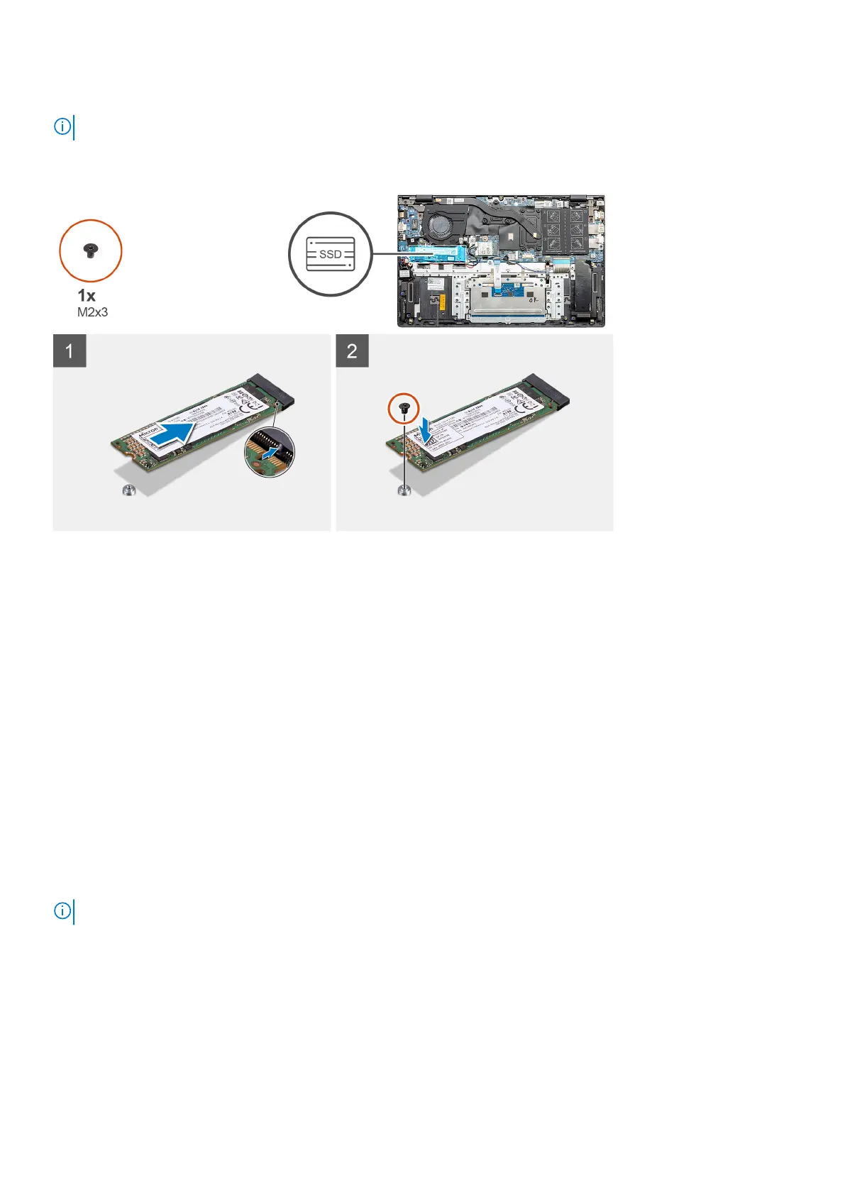 2. Replace the single (M2x3) screw to secure the solid-state drive module to the palm-rest and keyboard assembly.