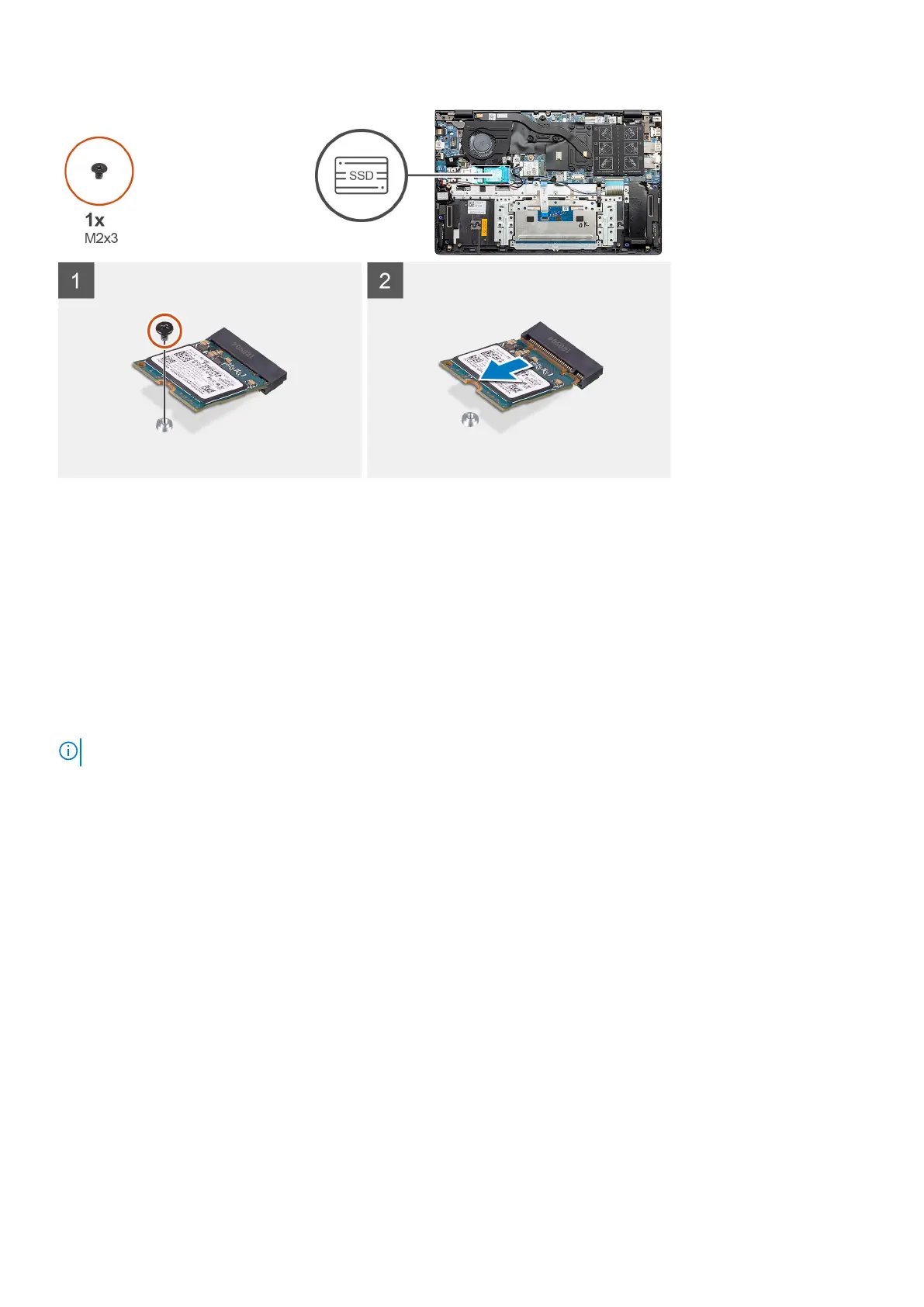 1. Remove the single screw (M2x3) that secures the solid-state drive to the palm-rest and keyboard assembly.