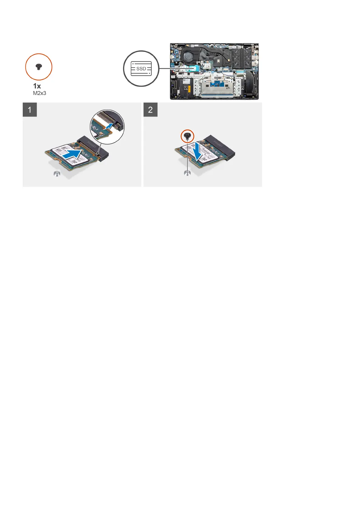 2. Replace the single (M2x3) screw to secure the solid-state drive module to the palm-rest and keyboard assembly.