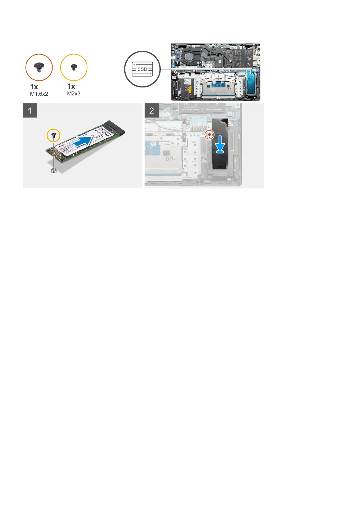 2. Replace the single screw (M2x3) that secures the solid-state drive module to the palm-rest and keyboard assembly.
