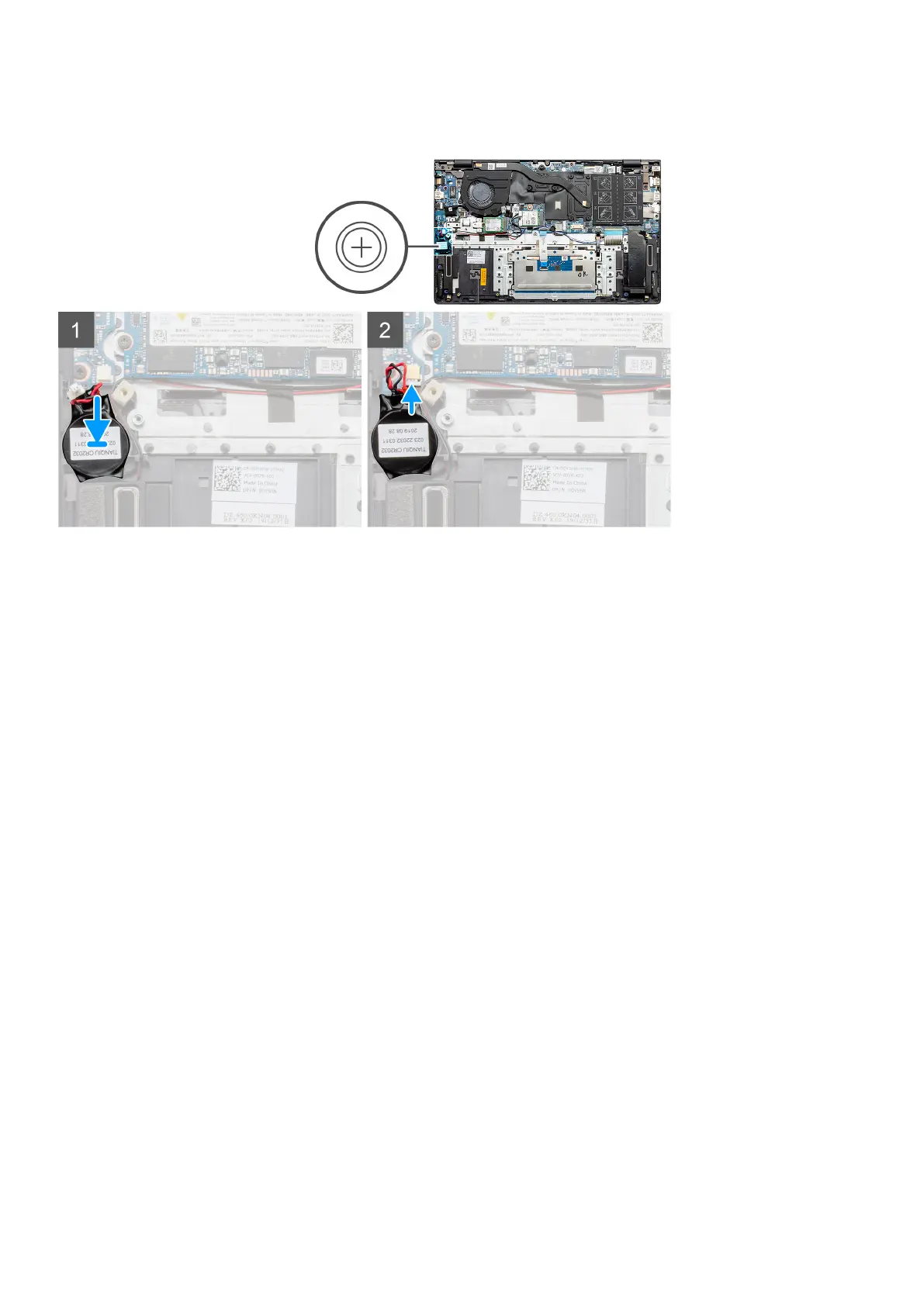 1. Adhere the coin-cell battery to the slot on the palm-rest and keyboard assembly.