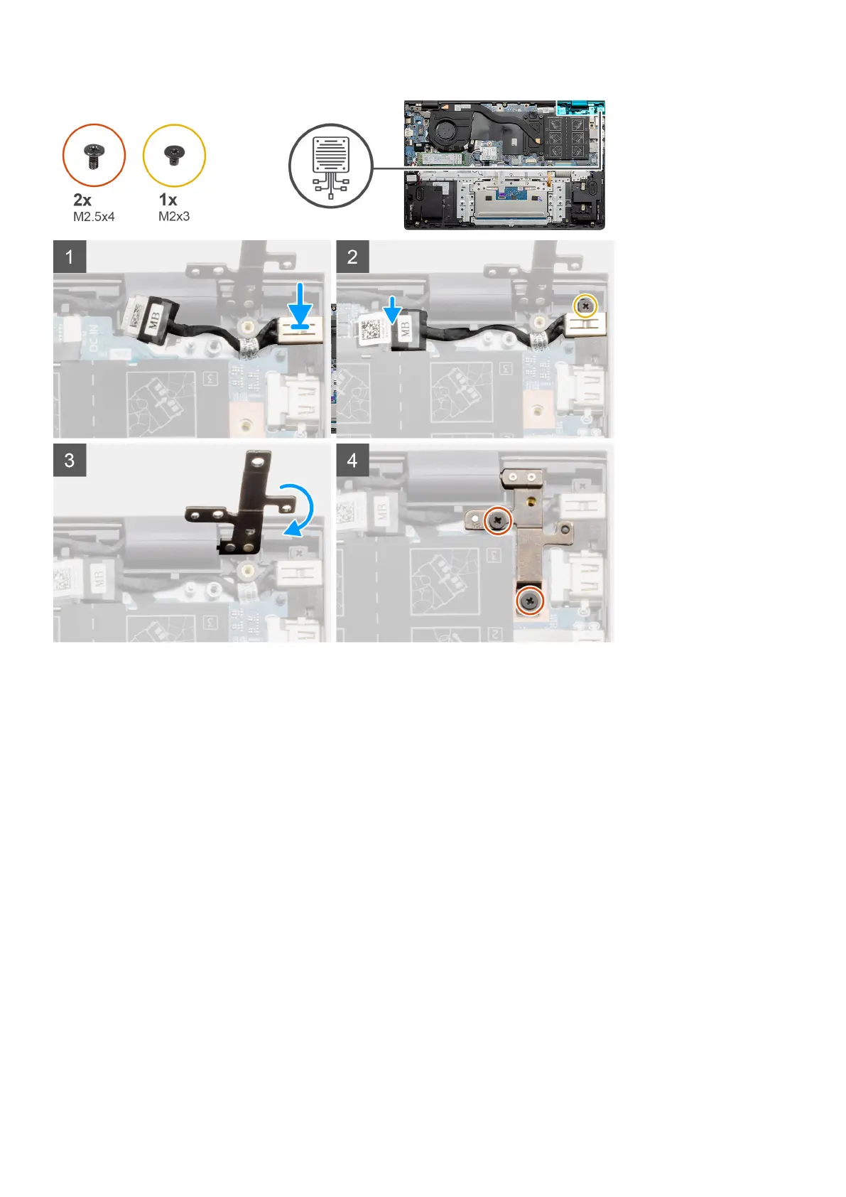 2. Replace the single screw (M2x3) on the DC-in port using bracket.