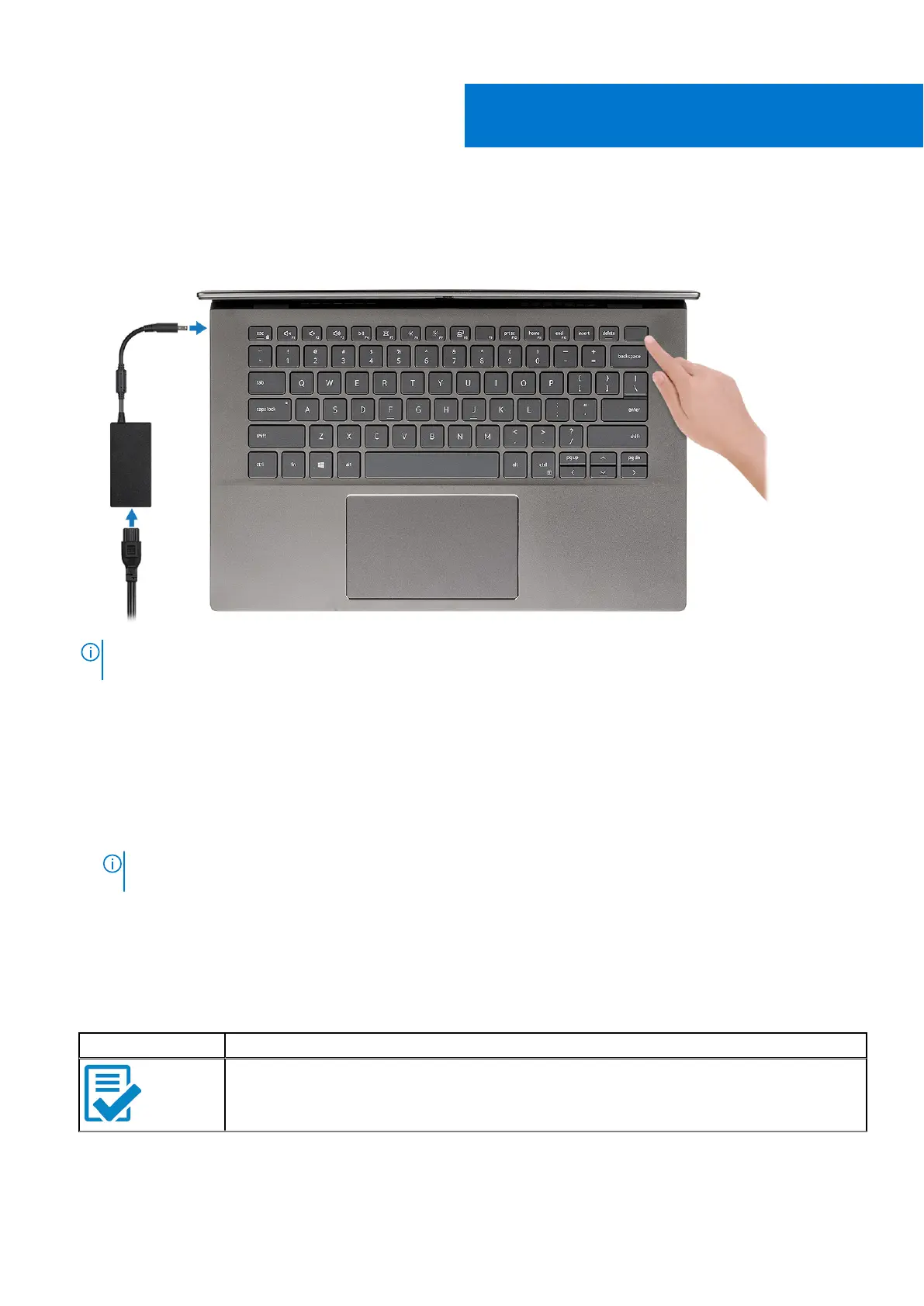 NOTE: To conserve battery power, the battery might enter power-saving mode. Connect the power adapter and press