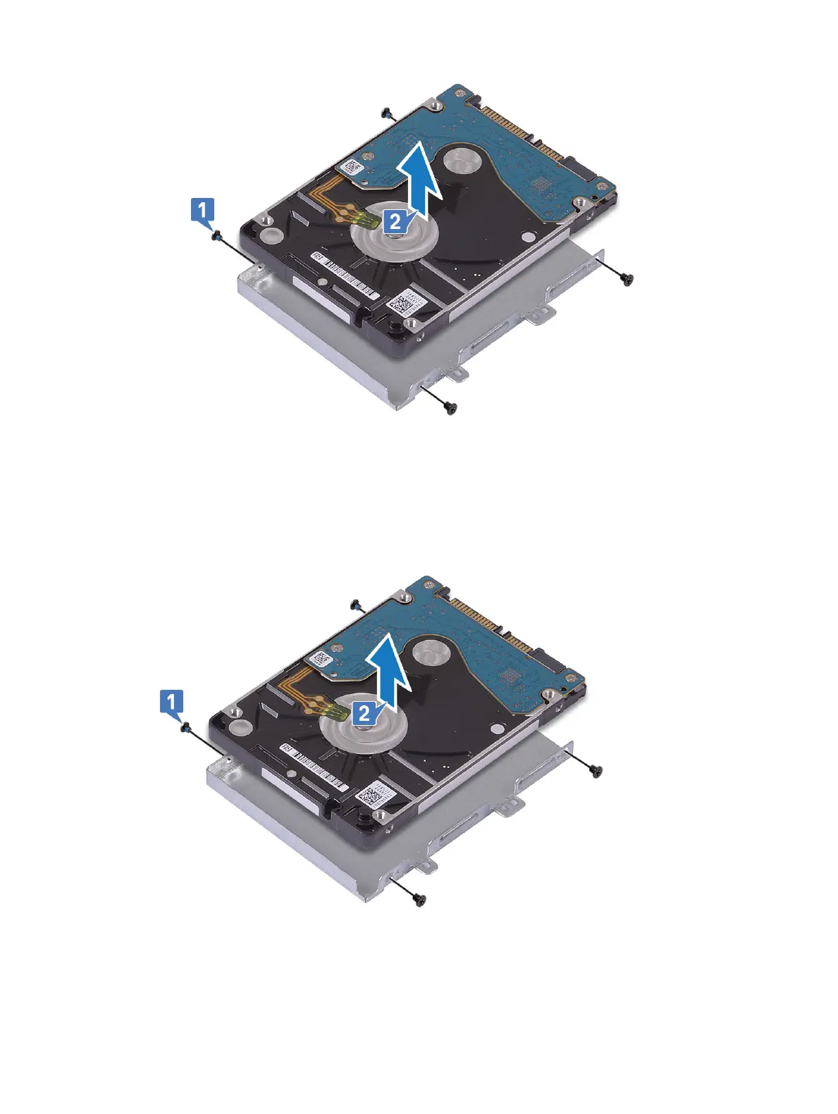 2 Replace the 4 (M3x3) screws to secure the hard drive bracket to the hard drive [2].