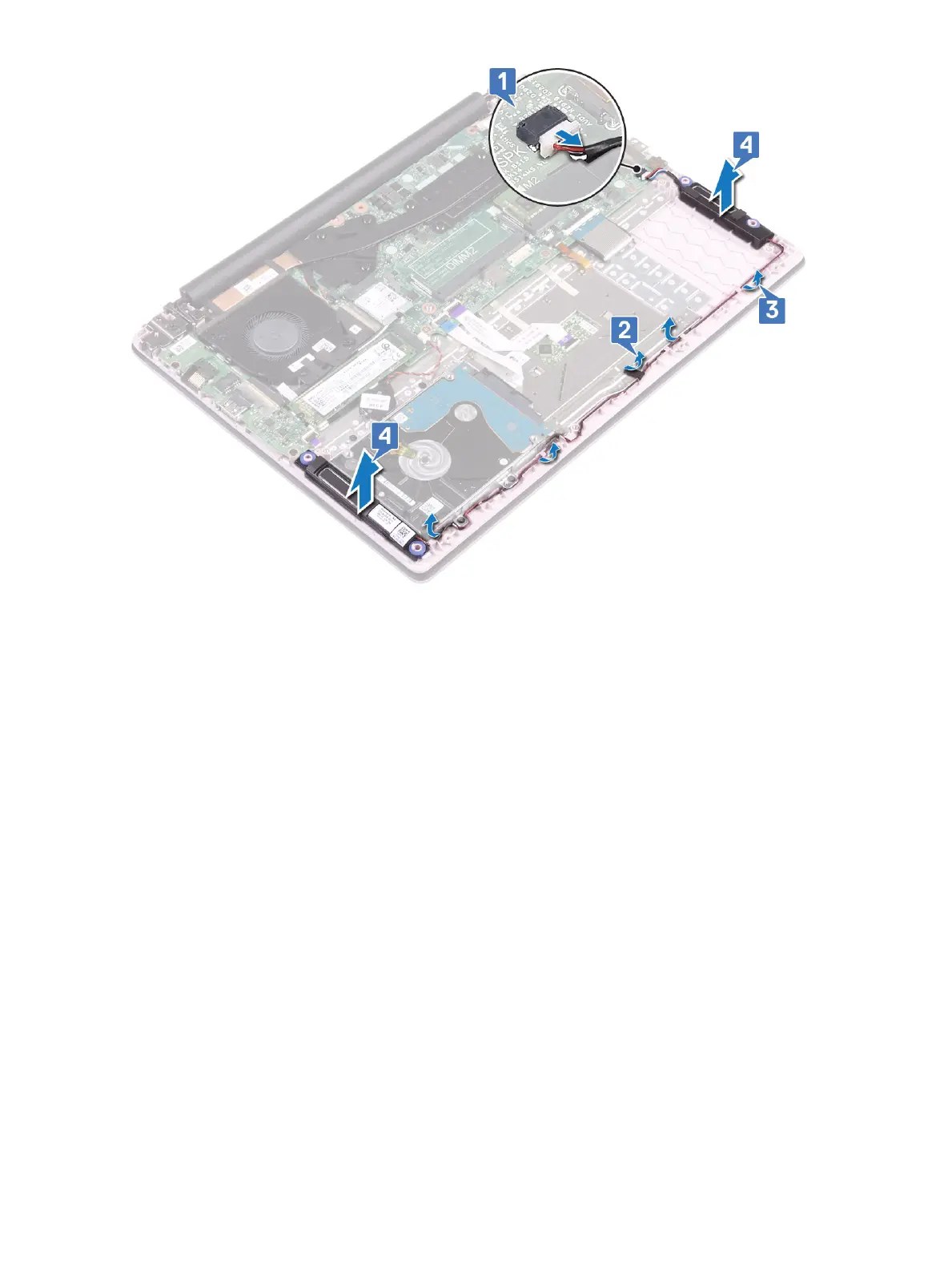 4 Connect the speaker cable to the connector on the system board [4].