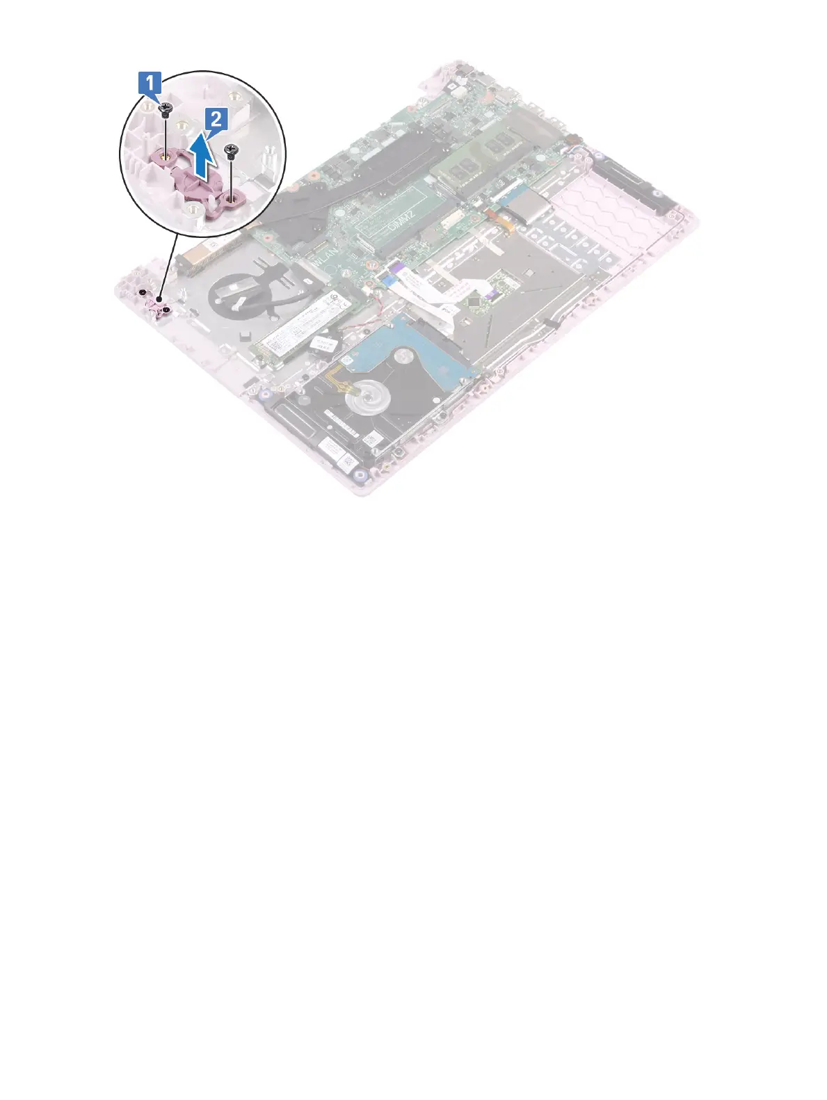 2 Replace the two (M2x3) screws to secure the power button to the palmrest and keyboard assembly [2].